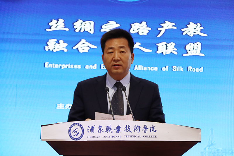 魏强宣读丝绸之路产教融合育人联盟酒泉宣言