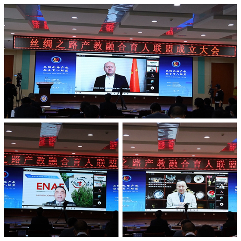 丝绸之路产教融合育人联盟是由丝绸之路沿线国家和地区的高等院校、产教融合型企业、行业协会及科研院所等共同发起成立的,是深化职业教育内涵建设,促进教育与产业契合发展的重要探索。旨在以丝绸之路文化精神为旗帜,传承“丝绸之路多元文化和谐共存的核心价值”,弘扬丝绸之路开放、包容、融合的文化精神,搭建国际产教融合交流平台,促使提高职业教育和企业行业融合程度,促使行业企业在现代职业教育体系建设中充分发挥作用,促使技术技能人才培养与产业发展技术进步需求契合度不断提升,促使职业教育对产业转型升级的推动作用显著增强,巩固拓展脱贫攻坚成果,助力乡村全面振兴,建立产教深度融合发展的新格局。