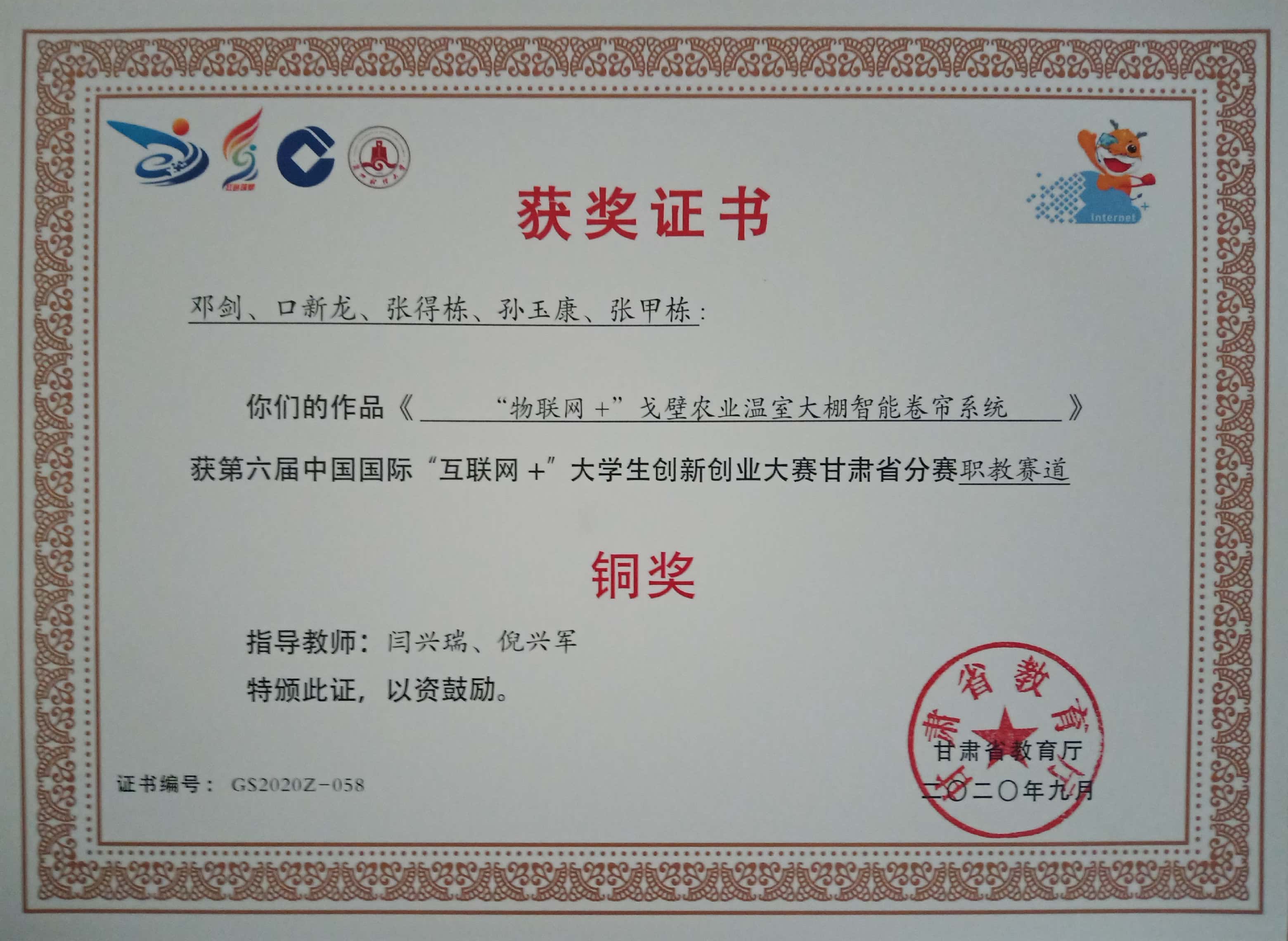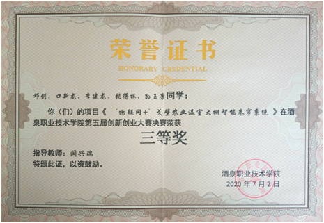 目前已带动100余人次的电气自动化技术专业学生参与了酒泉世博大厦地下停车场照明供电系统、酒泉工贸中专机加工实训设备供配电系统、洪洋广场二楼商场照明供电系统、酒泉职业技术学院智慧农业实训室电采暖智能控制等工程项目;5名学生参与“物联网+”戈壁农业温室大棚智能卷帘系统创新创业项目,获得2020年国家级大学生创新创业训练计划立项、“甘肃金控杯”2020年“创客中国”甘肃省中小企业创新创业大赛省级三等奖、第六届中国国际“互联网+”大学生创新创业大赛省级铜奖、2020年“创客中国”酒泉市中小企业创新创业大赛市级优胜奖、酒泉职业技术学院第五届创新创业大赛三等奖;工作室也获得酒泉职业技术学院2016年创新创业教育先进集体荣誉称号,工作室负责人闫兴瑞老师获得酒泉职业技术学院2016年教育教学改革先进个人称号。