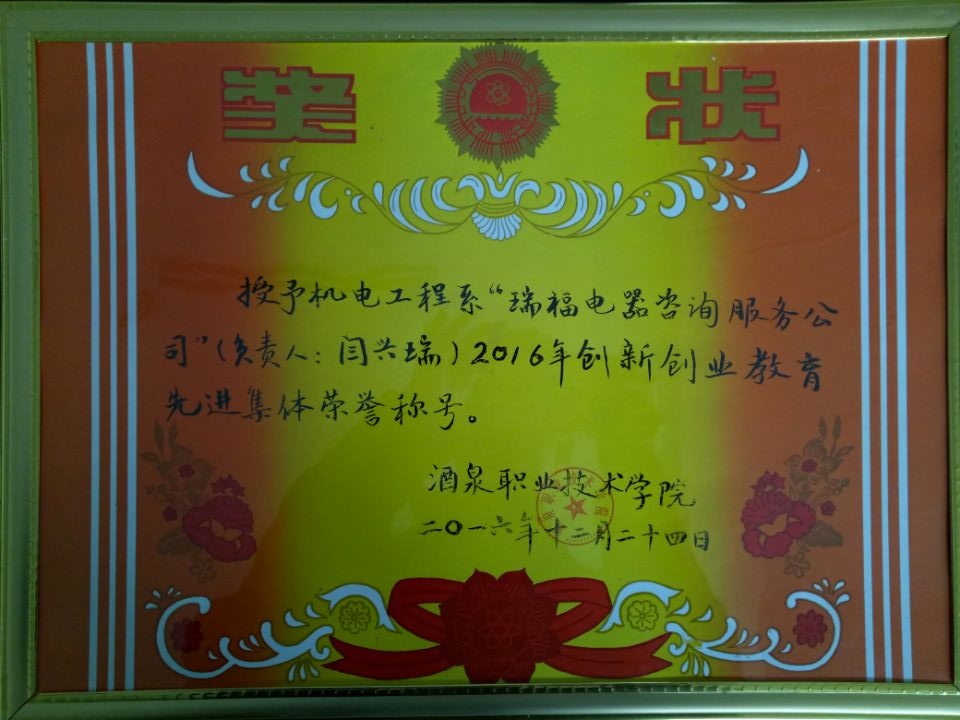 2016年4月,乘国家创新创业教育发展的东风,机电工程学院电信系闫兴瑞老师负责成立了瑞福电气咨询服务工作室,旨在探索和实践具有电气自动化技术专业特色的创新创业教育的新模式,丰富教师队伍的工程项目经历,增强专业课教师的工程实践能力,提升学生的综合素质,推进电气自动化技术专业教育教学改革。