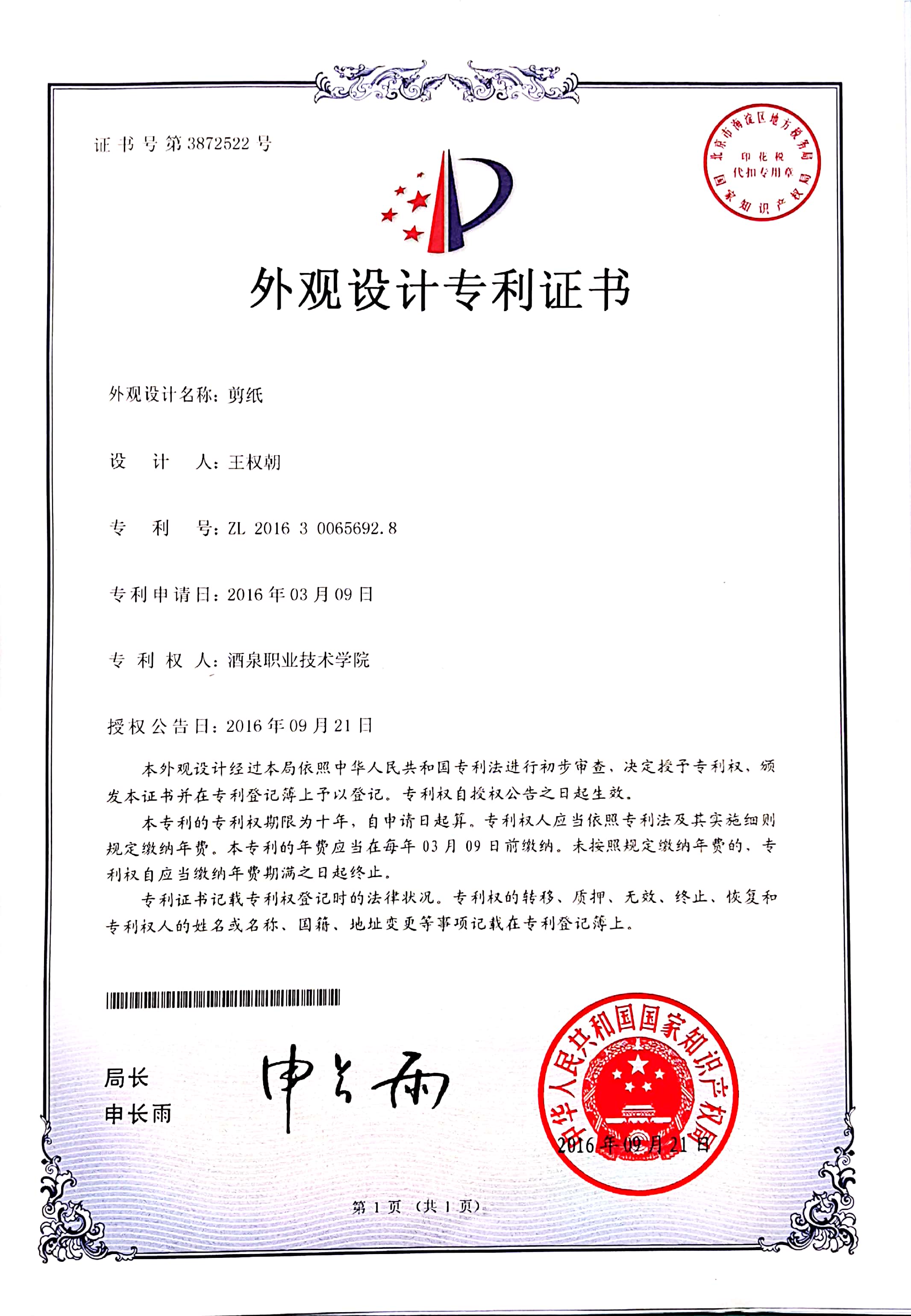 专利证书