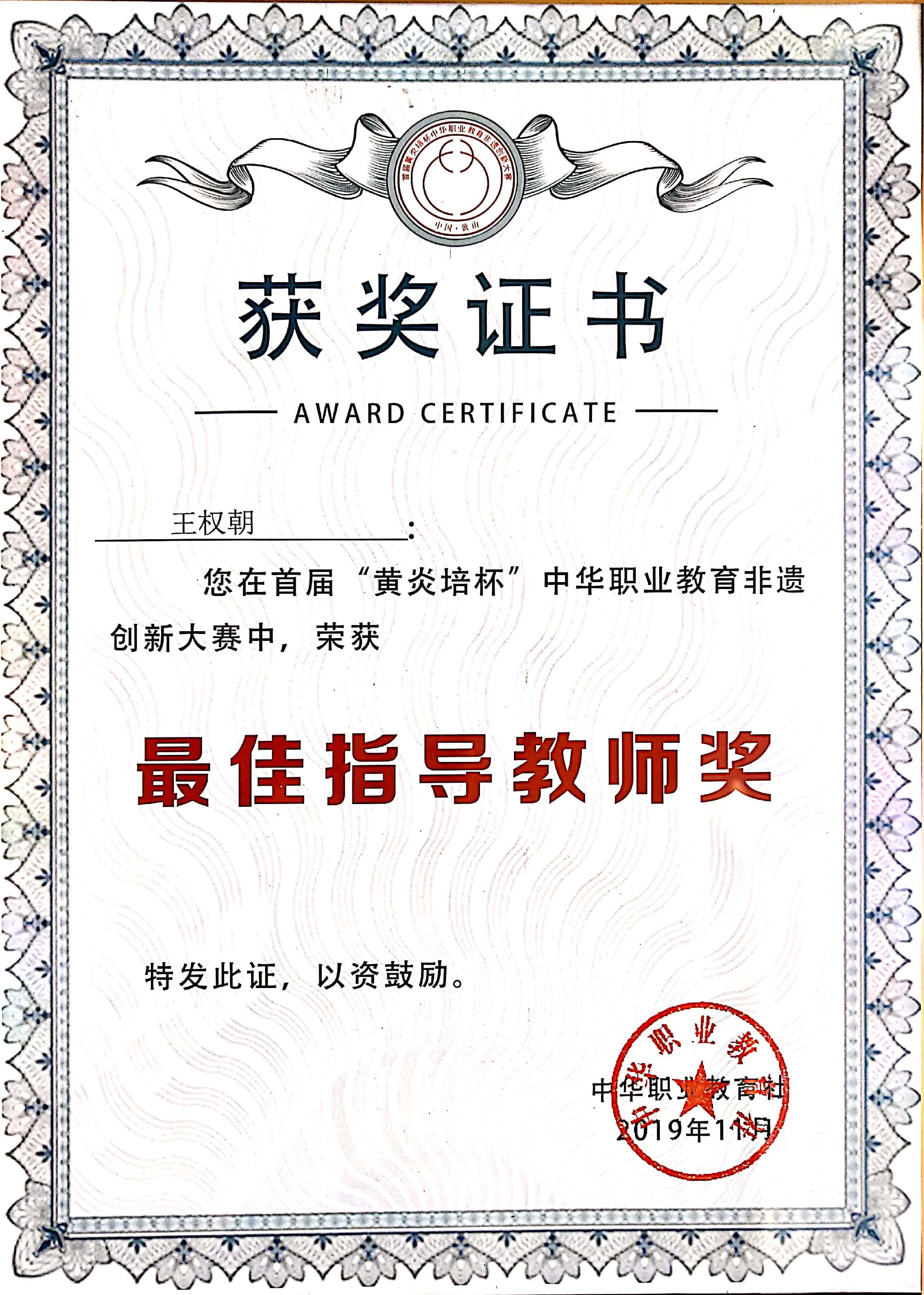 获奖证书