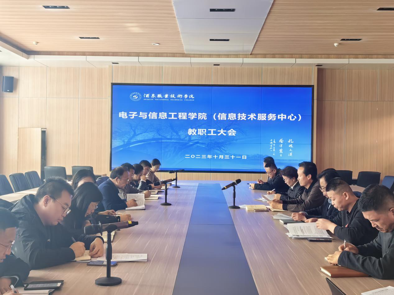 10月31日下午,电子与信息工程学院召开教职工大会,组织学院全体教师学习中国共产党酒泉职业技术学院委员会换届选举党员大会上的工作报告,会议由学院党支部书记、院长武兴宝同志主持。