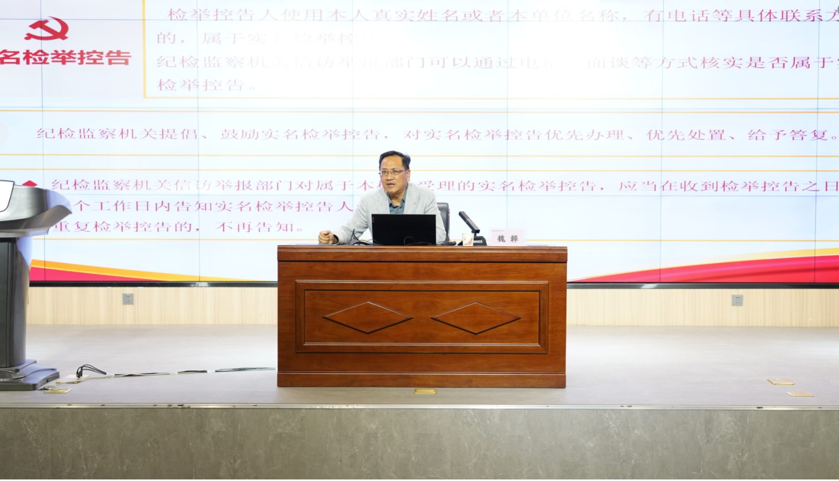 讲座中,魏韡书记首先强调了学习《信访工作条例》《纪检监察机关处理检举控告工作规则》的重要性,指出这不仅是对国家法律法规的遵守,也是维护校园秩序、保护师生合法权益的必要措施。随后,魏韡书记详细解读了《条例》《规则》的发布时间、制定目的和依据、指导思想、遵循原则等核心内容,并对如何正确处理信访举报、检举控告等问题进行了深入讲解。最后,结合典型案例,魏韡书记解读诬告陷害情形的界定、触及的法律依据及相应的处罚后果。