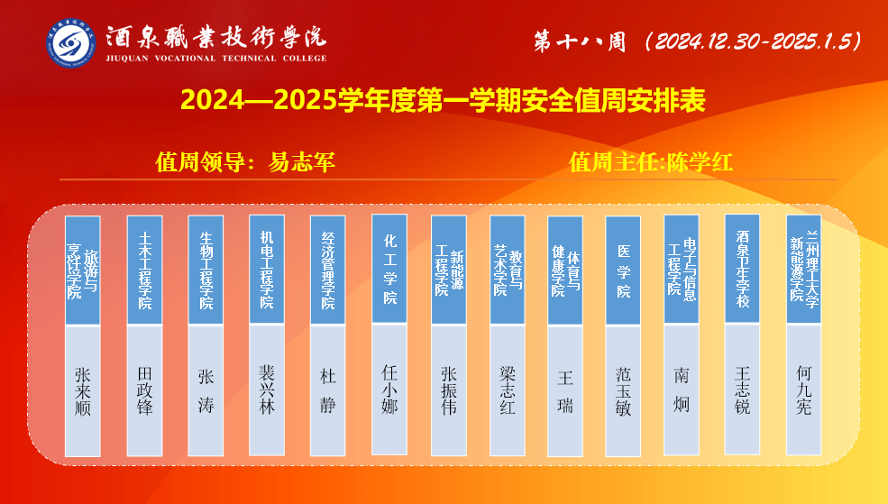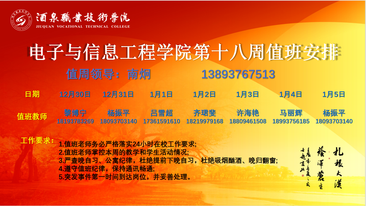 第十八周值班安排(12.30~1.5)