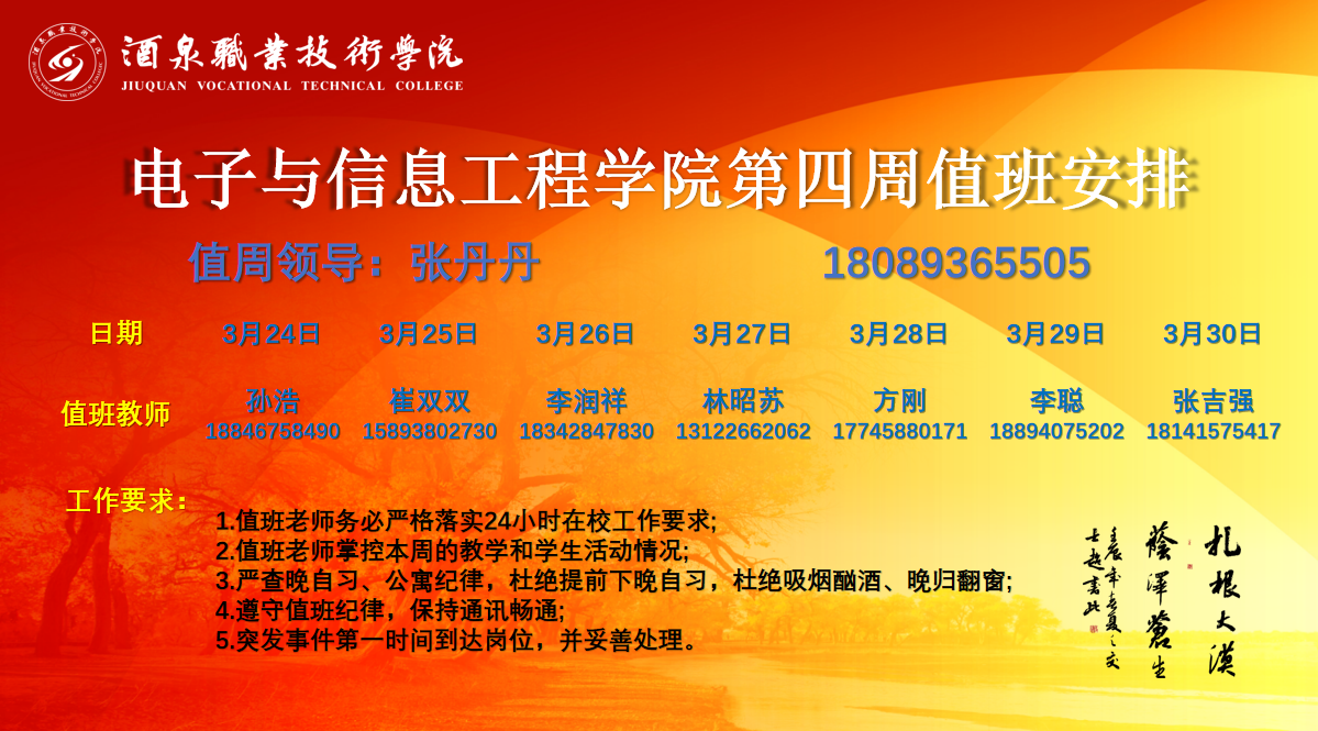 第四周值班安排(3.24~3.30)