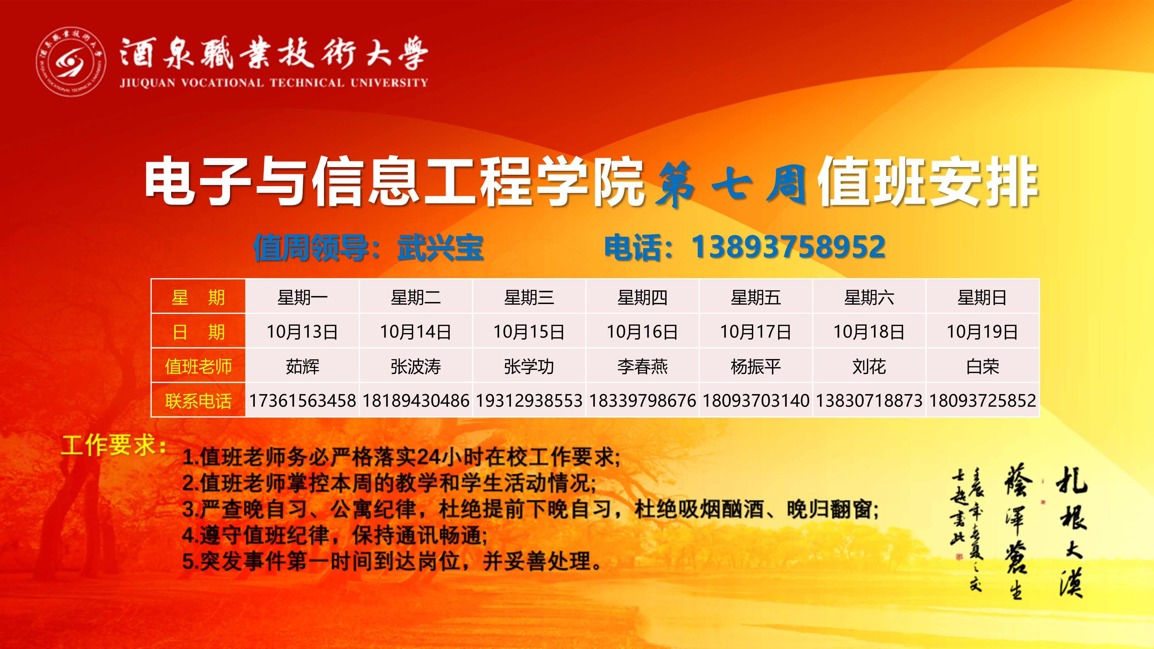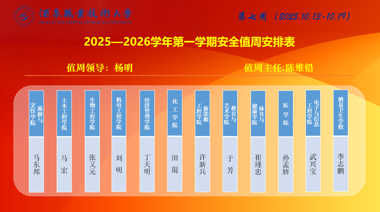 第七周值班安排(10.13-10.19)