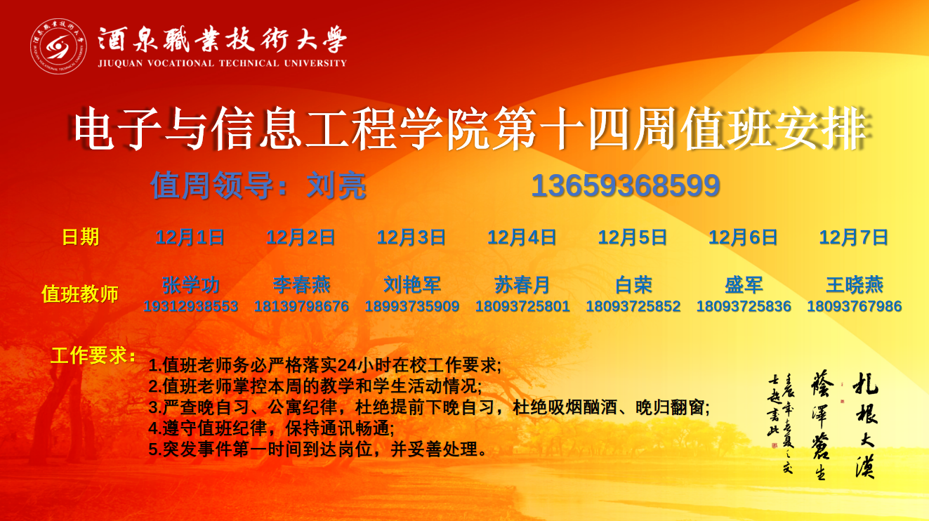第十四周值班安排(12.01-12.07)