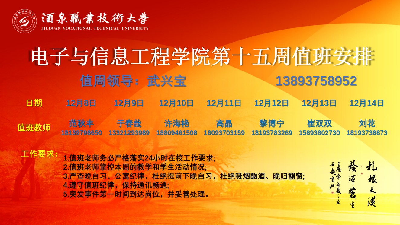 第十五周值班安排(12.08-12.14)