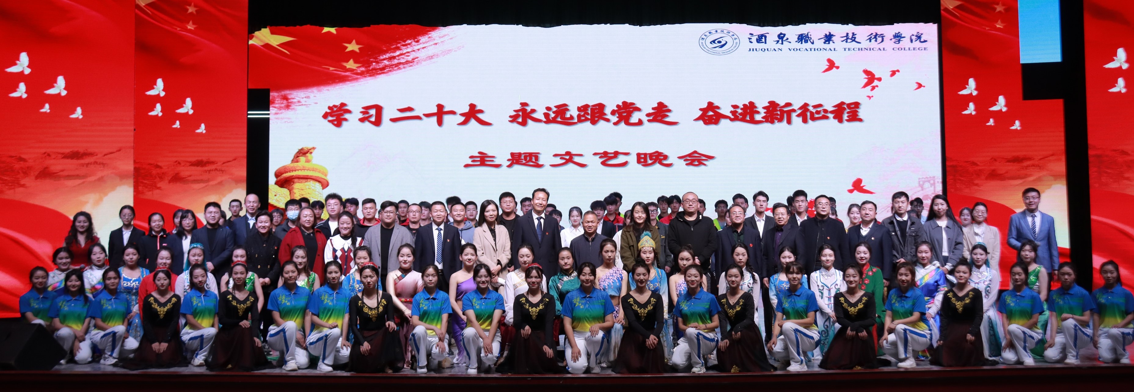 此次主题文艺晚会在宣传部、学生处、团委、各二级学院的大力支持下成功举办,现场呈现“大美酒职”美好画卷的独特魅力,反映全体师生感党恩、听党话、跟党走,以更加饱满的工作学习热情和昂扬的奋斗姿态,建功新时代奋进新征程。
