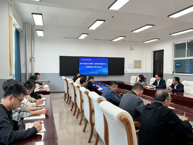 10月15日,电子与信息工程学院(信息技术服务中心)召开全国教育大会学习研讨会,旨在深入学习并探讨“推动高质量发展”系列主题新闻发布会(教育部)中关于职业教育的相关内容。会议由学院院长武兴宝主持,全体教师参加。