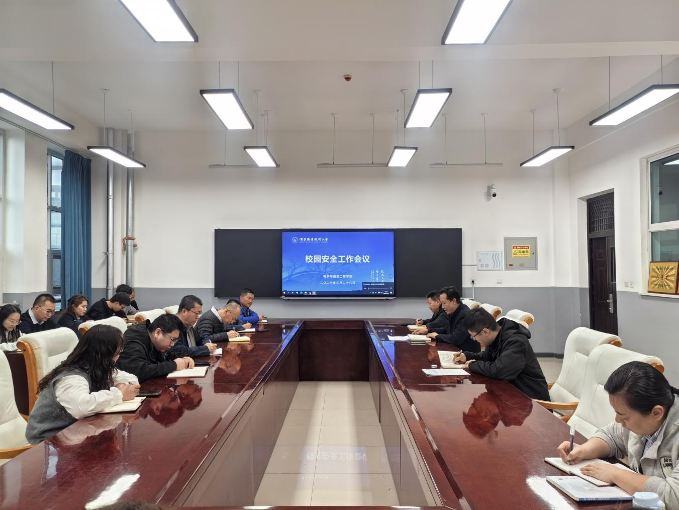 3月26日下午,电子与信息工程学院召开安全工作会议。会议由党支部书记、院长武兴宝主持,全体教职工参加会议。