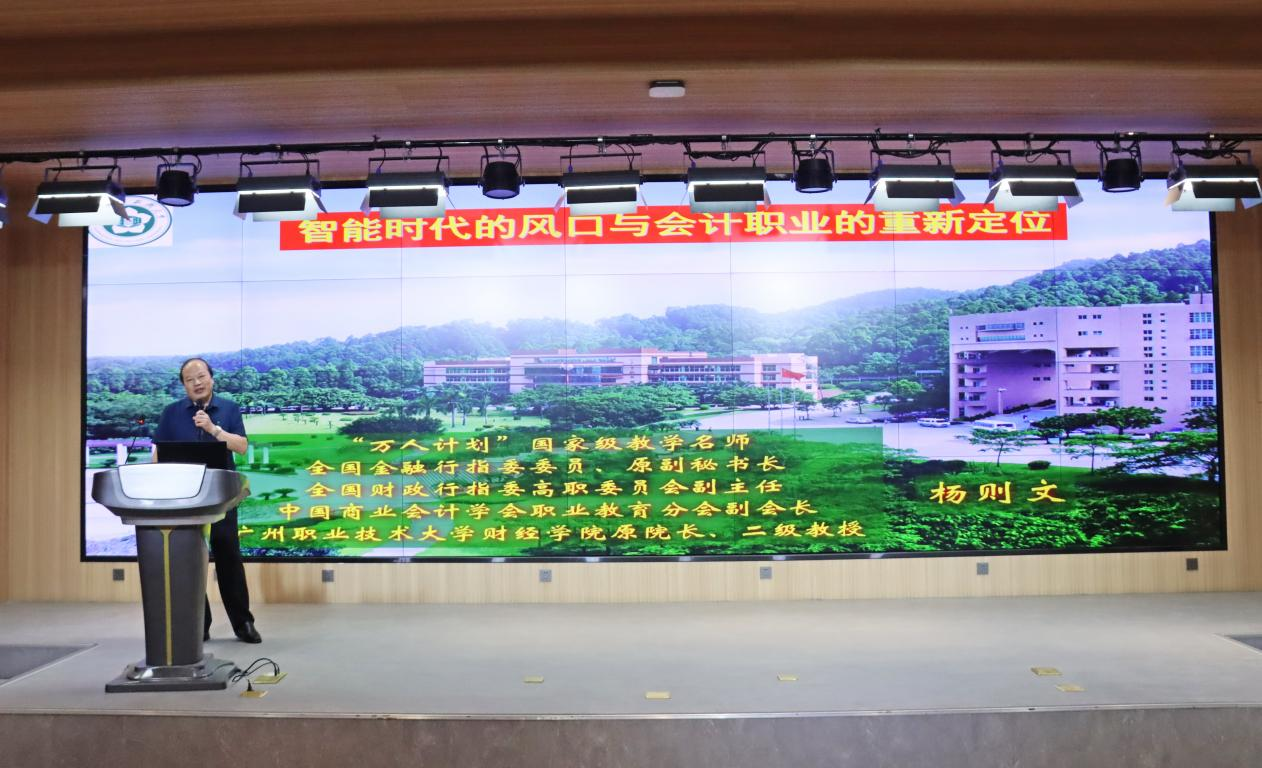 在专家主题分享环节,各位嘉宾带来了精彩纷呈的演讲。中国财政科学研究院原副院长、博士生导师王朝才围绕 “当前经济形势与财政金融政策” 展开分析,深入解读了宏观经济环境对行业的影响;国家高层次人才特殊支持计划领军人才、广州职业技术大学财经学院原院长杨则文探讨了“智能时代的风口与会计职业的重新定位”,为会计行业未来发展指明方向;全国财政行指委委员、正誉股份董事长鲁银花则聚焦 “企业服务新生态 -- 行业转型与企业数智化升级”,分享了行业转型的实践经验。