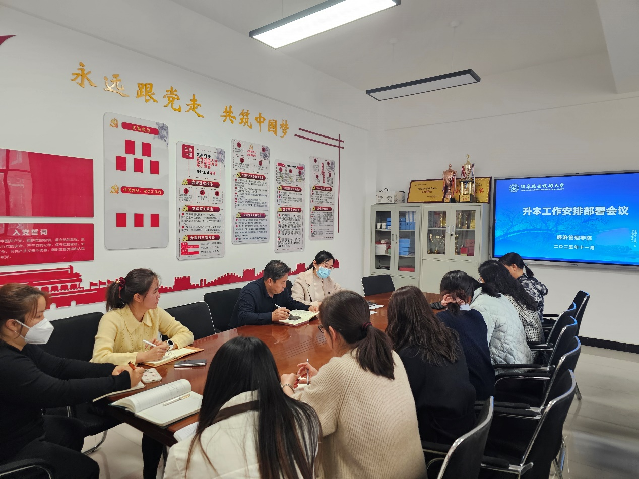 会上,杜静副院长围绕《酒泉职业技术大学经济管理学院升本工作方案》作出具体部署。张晓彬院长传达了学校升本工作整体部署要求,深刻阐释了职业本科申报对学院长远发展的重要战略意义。他强调,全体参会人员要以高度的责任感和使命感投入工作,严格落实各项任务,确保工作落地见效,全力推动升本申报工作有序开展。