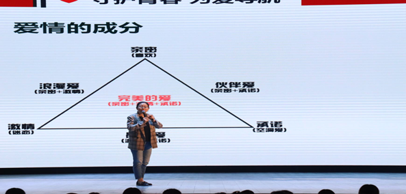 本次主题讲座旨在提高女大学生对恋爱的正确认识,树立正确的恋爱观。王莹老师分别从恋爱的定义、恋爱的交往心理以及如何处理恋爱中的问题进行深入地剖析,并引用了大量有关大学生的情感、恋爱的调查数据,清晰地阐述了爱是需要学习的,并就爱的能力与大学生恋爱中遇到的“疑难杂症”等方面进行分析和讲解。围绕着三种爱情相关理论,她举出实例一一分析,并送给同学们一些宝贵的建议:要接纳自身的不完美,学会经营爱情和友情;要做好情绪管理,学会处理冲突和差异。