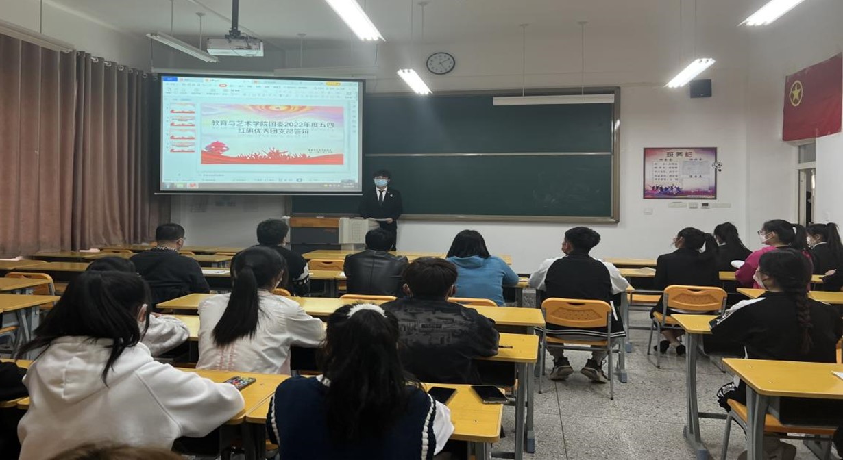 为激励全校广大青年集中展现在习近平新时代中国特色社会主义思想指引下昂扬向上、奋发有为的精神风貌,以优异成绩迎接党的二十大胜利召开。3月30日,教育与艺术学院开展“五四红旗团支部”评选答辩活动,此次活动面向学院43个团支部,依据“智慧团建”系统对标定级标准,共有8个团支部参加答辩。