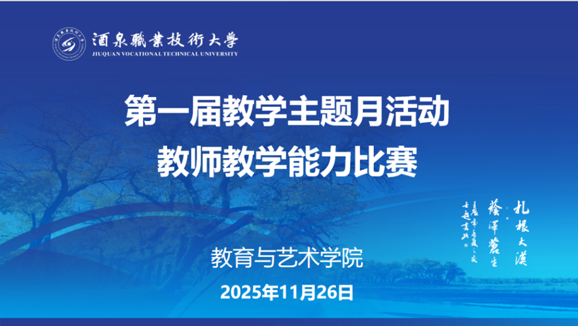 为贯彻落实学校《关于组织开展酒泉职业技术大学第一届教学主题月活动的通知》精神,深化教育教学改革,提升教师综合素质与创新能力,推进高水平教学团队建设,教育与艺术学院于近期举办了教学主题月系列活动之教师教学能力比赛。