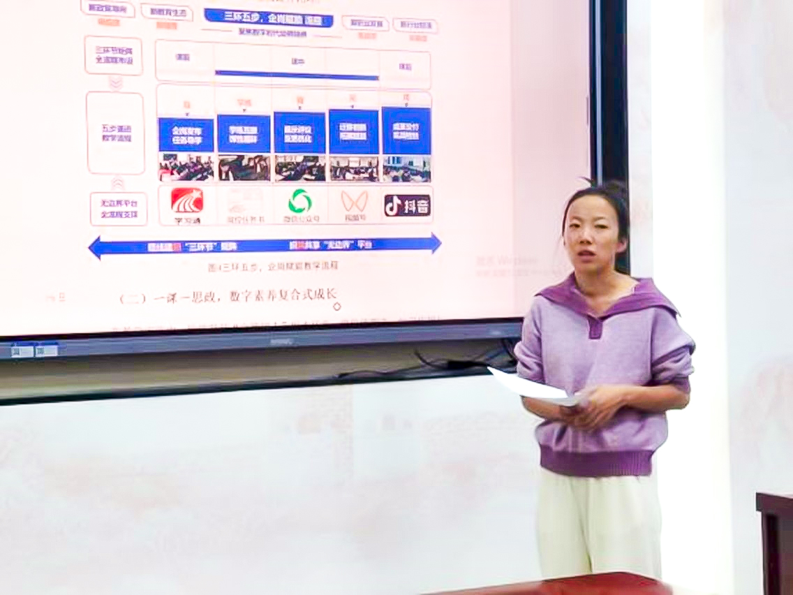程姝玮老师团队以《敦煌舞》课程为例,通过琵琶与长绸组合舞句的专业训练,生动展示了敦煌舞蹈教学的创新实践;石金蕊老师团队围绕《幼儿歌曲弹唱》课程,注重弹唱技能的阶梯式培养,同时强化幼儿情感共鸣的沉浸式引导,凸显了艺术教育的独特魅力。教育系李娟老师团队以《数字化教育技术与应用》课程为例,结合学前教育专业需求,呈现了AI赋能图像处理与数字化技能的实战价值。设计系张沐可老师团队则围绕《幼儿园教师艺术技能(手工)》,以纸造型专题为例,系统展示了手工技艺在幼儿教育中的多元化应用场景。
