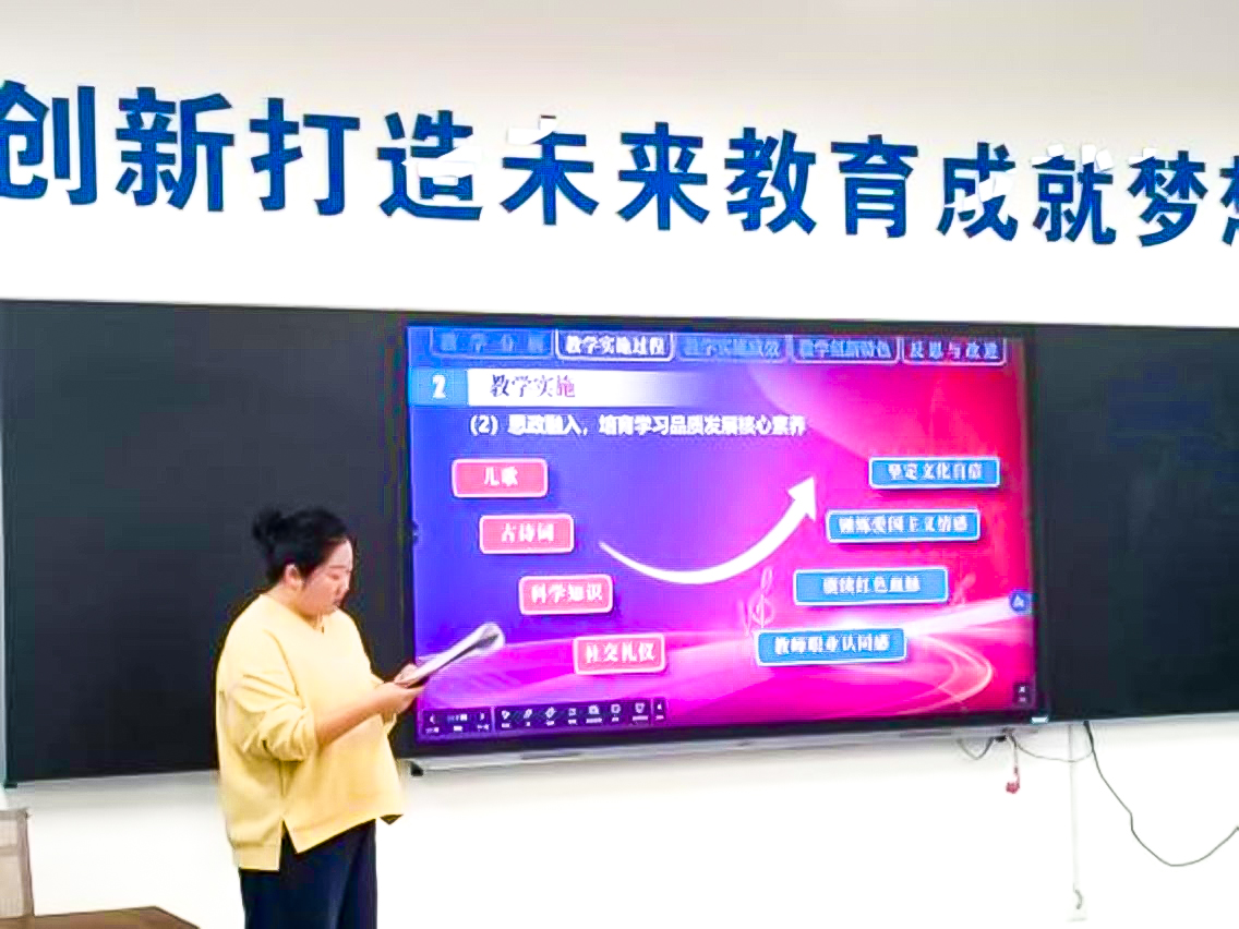 根据通知要求,学院全体教师积极参与。参赛团队首先于11月25日进行了系部比赛。艺术系的三个教师团队围绕《即兴伴奏》《幼儿歌曲弹唱》《敦煌舞》等课程,展现了艺术教育的独特魅力;教育系两个教师团队围绕《数字化教育技术应用》《学前儿童心理发展》课程,呈现了专业理论教学与实践应用的深度融合;设计系三个教师团队围绕《幼儿园教师艺术技能(儿童画)》《幼儿园教师艺术技能(手工)》《公共艺术》课程,体现了教学内容的实用性与趣味性,彰显了教师素养与创新教学能力的协同提升。