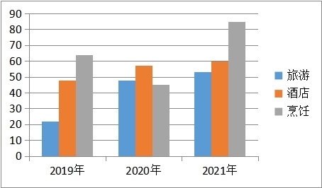 从我院3个专业的近三年就业市场供求趋势来看,酒店管理与数字化运营、烹饪工艺与营养专业逐年增加,企业提供的岗位完全能满足毕业生就业;旅游管理专业供求基本平衡。