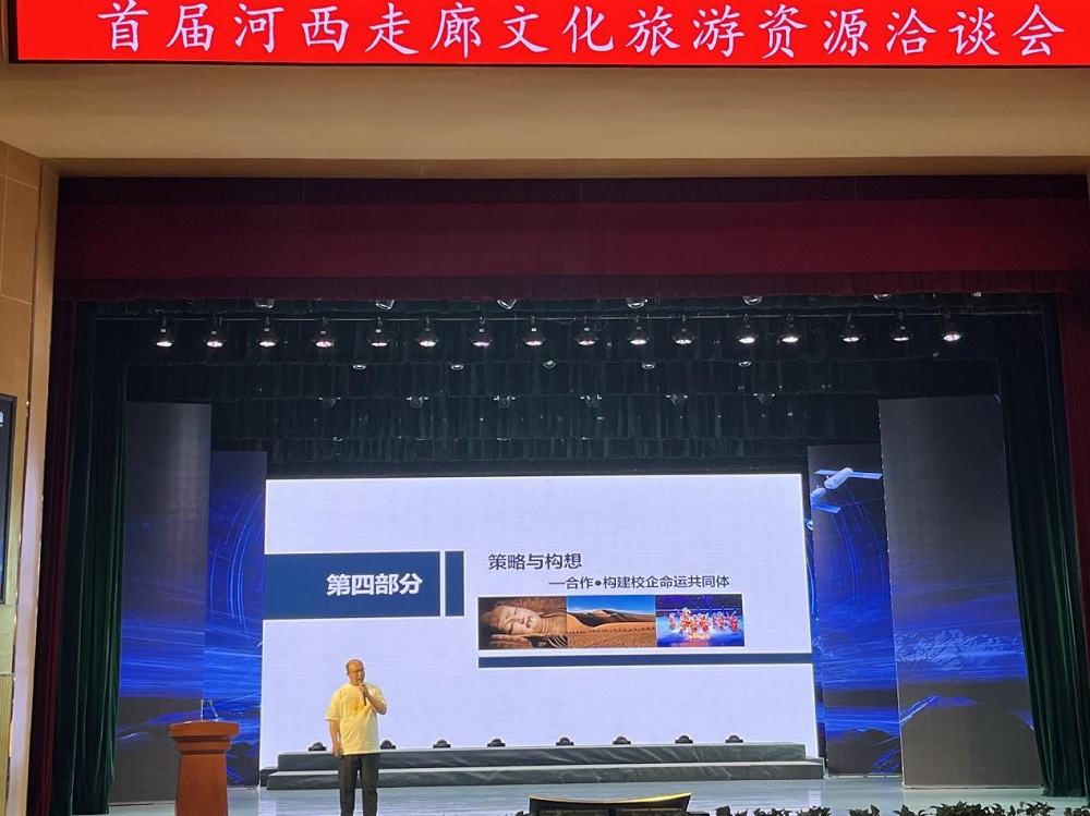 2022年5月19日,酒泉职业技术学院旅游与烹饪学院受邀参加首届河西走廊文化旅游资源洽谈会,党支部书记、院长杨洁同志做了《合作·构建校企命运共同体》的主旨发言。