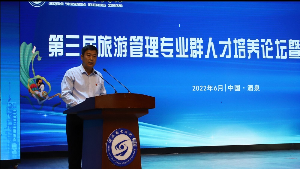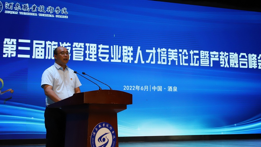 为持续深化教育教学改革,进一步优化各专业人才培养方案,提高人才培养质量,6月27日第三届旅游管理专业群人才培养论坛暨产教融合峰会在胡杨文化活动中心举行。酒泉职业技术学院党委副书记许军、教务处、招生就业处等领导以及群内各专业300名师生参加了会议,会上中国教育科学研究院、劳动与社会实践教育研究所所长王晓燕研究员、西北师范大学旅游学院把多勋教授、甘肃政法大学奥莉娅教授等多位旅游管理专业群专家为大会作了主旨,来自酒泉市域内近50家校企合作企业出席此次会议。