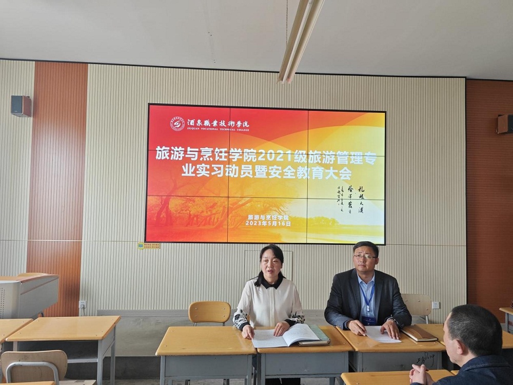 为进一步完善毕业生实习工作,引导学生做好岗位实习,推进各项工作的顺利进行,旅游与烹饪学院于5月16日在行知楼620教室召开了2021级旅游管理专业学生岗位实习暨安全教育动员大会,学院副院长王晓梅、副院长刘兴龙以及旅游管理专业教师参加了此次会议。