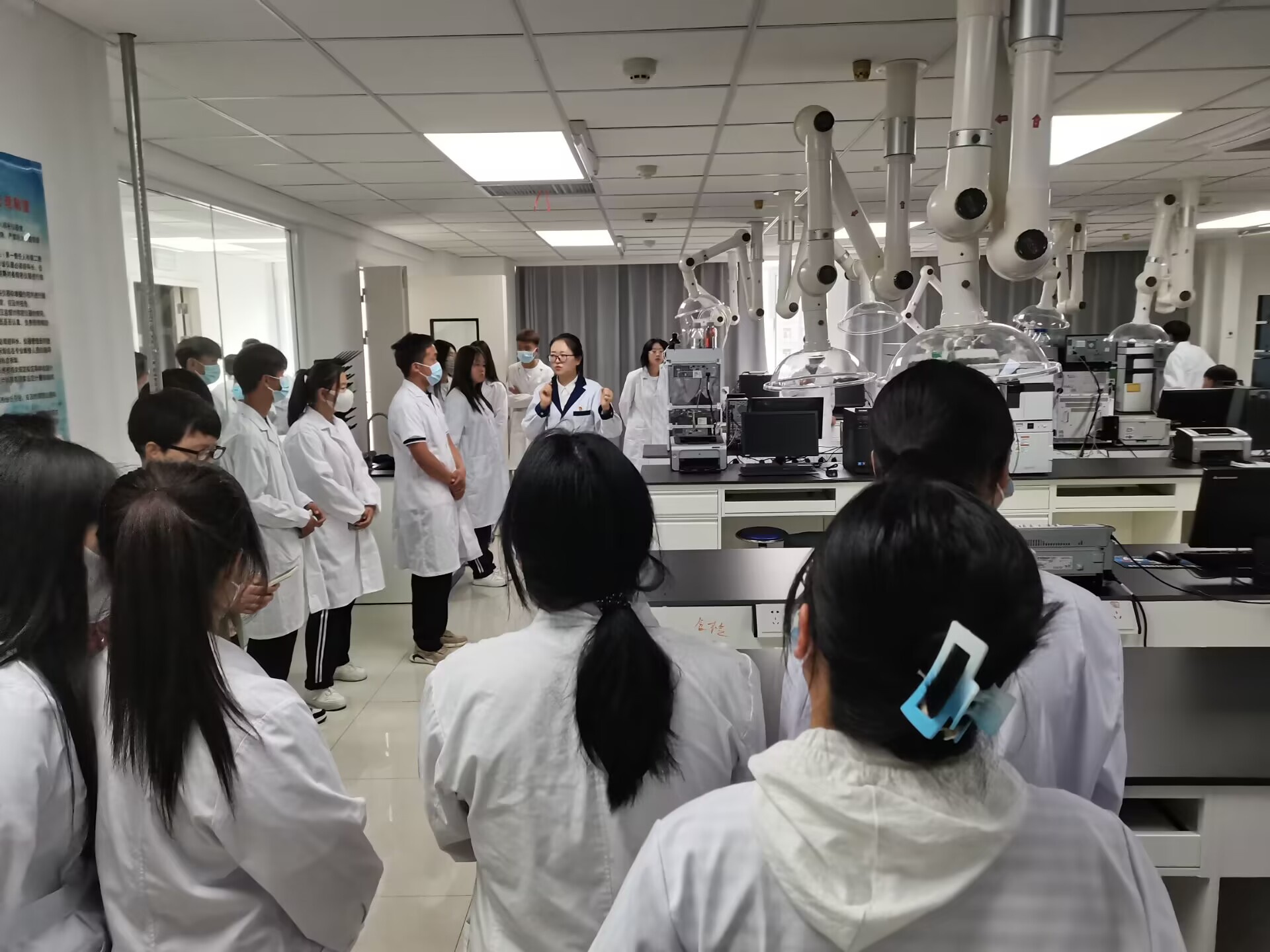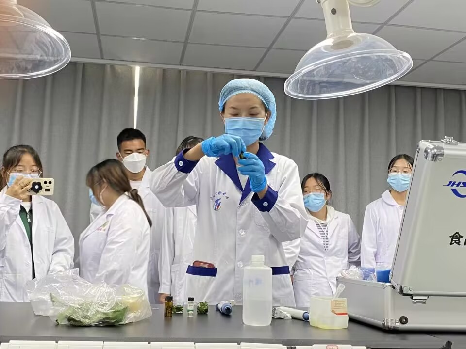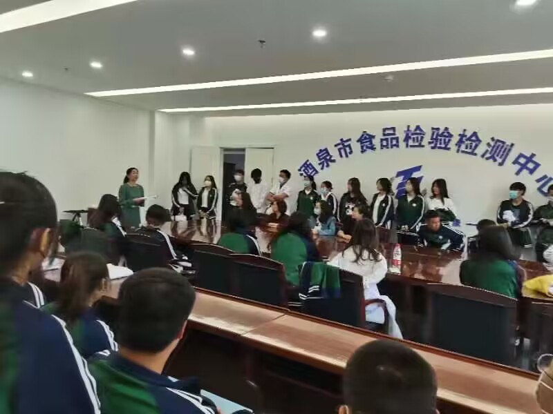 活动中,酒泉市食品检验检测中心副主任马正华、科长任兴权等对检测中心建设及检测项目做了综合介绍;高级工程师王蓉向同学们详细介绍了检测中心业务范围、业绩成果以及食品安全等,带领师生们参观了理化检验实验室、农药兽药残留检验室、微生物检测实验室和食品添加剂检验室等;现场工作人员进行农药残留快速检测讲解及演示,同学们边观摩边进行实际操作。
