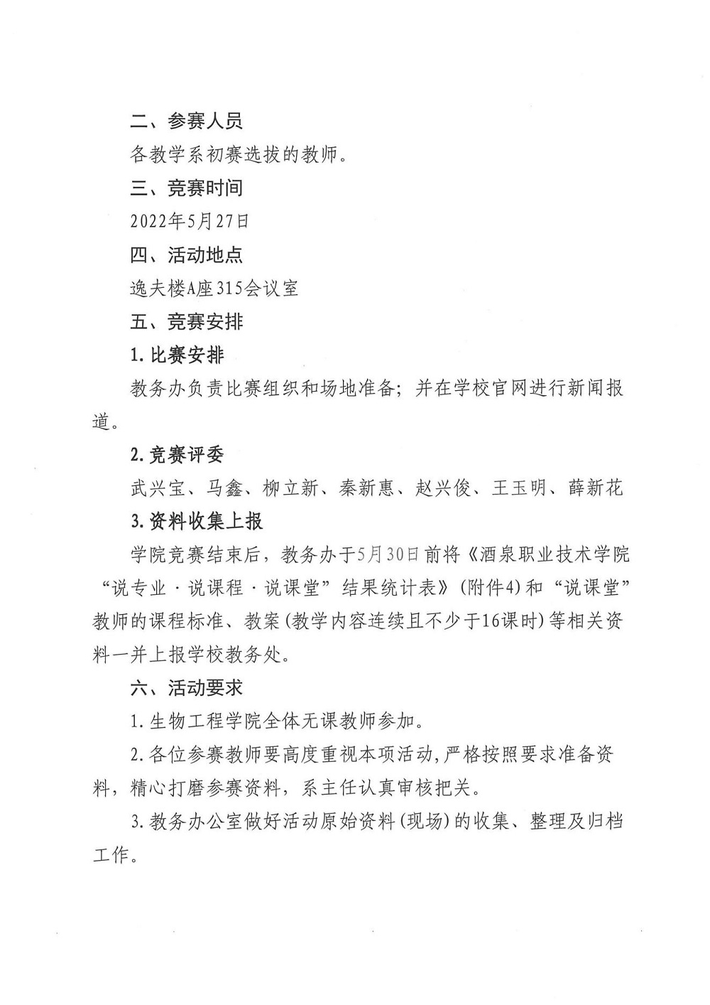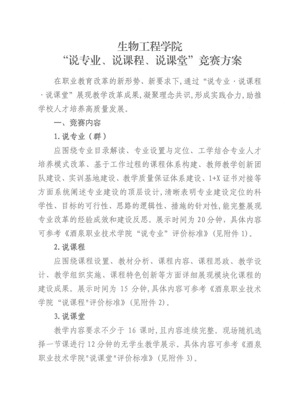 生物工程学院“说专业、说课程、说课堂”竞赛方案