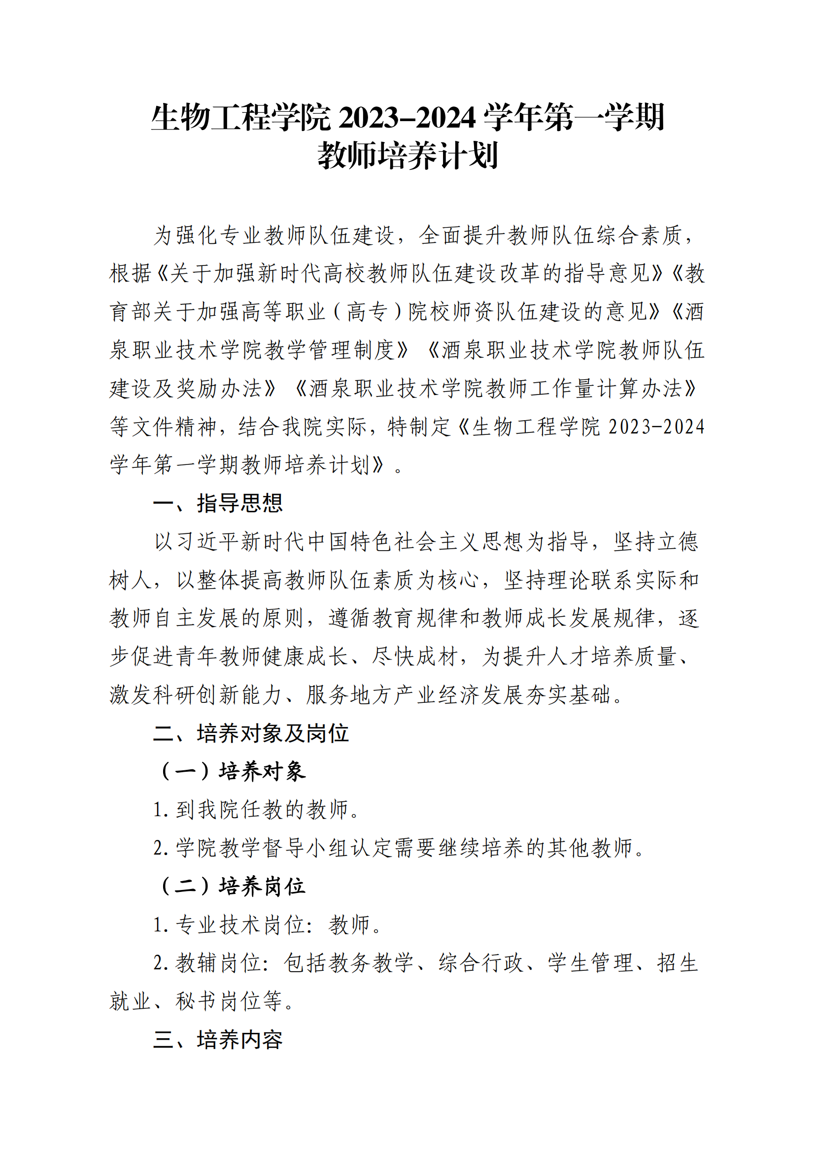 生物工程学院2023-2024学年第一学期教师培养计划