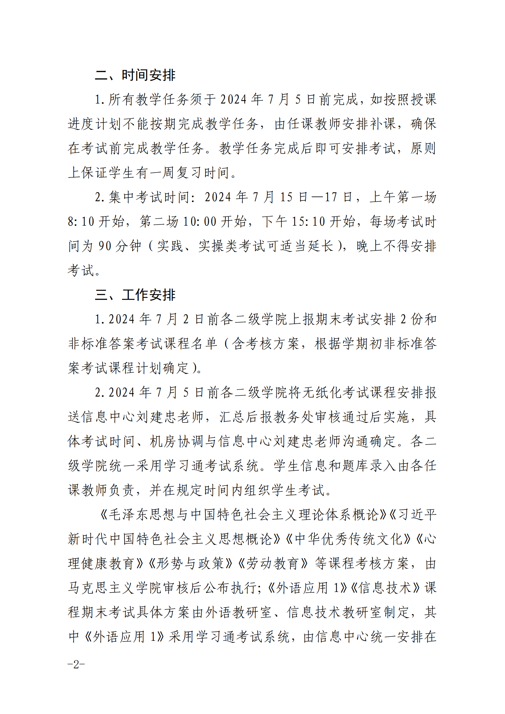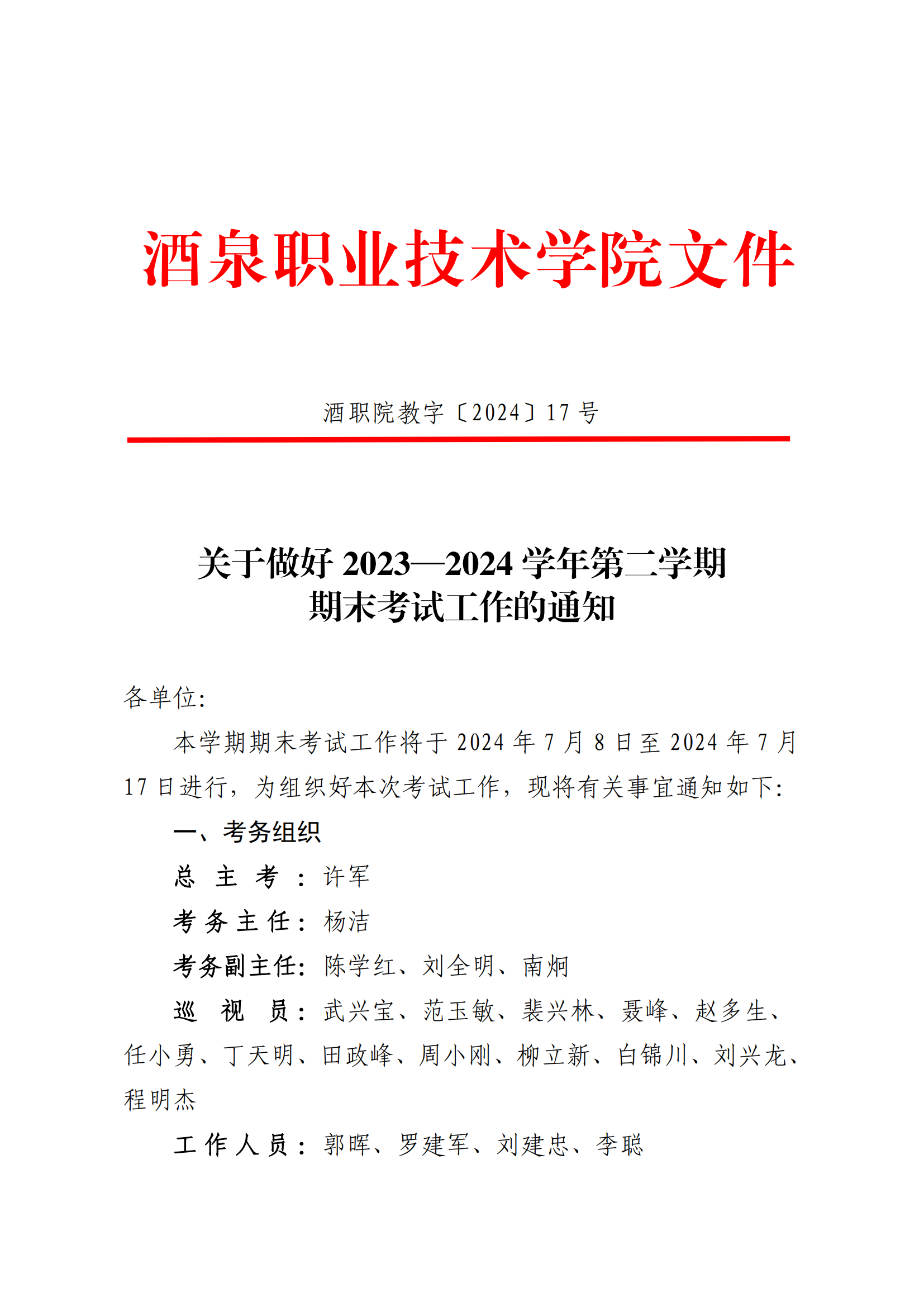 关于做好2023—2024学年第二学期期末考试工作的通知