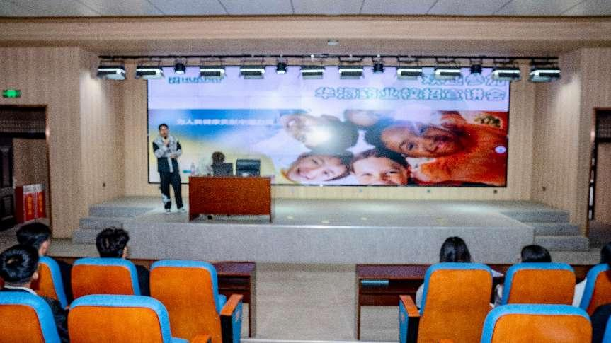 宣讲会伊始,华海药业通过企业宣传片生动展现了其在肿瘤靶向药物研发、生物制剂生产及全球化布局中的核心竞争力。招聘主管董雨星强调,作为国内医药行业领军企业,华海药业始终以“科技守护健康”为使命,近年来在基因治疗、疫苗研发等领域取得多项突破性成果。“我们期待与生物工程学院深化合作,为青年学子提供实践与成长并重的职业平台。”