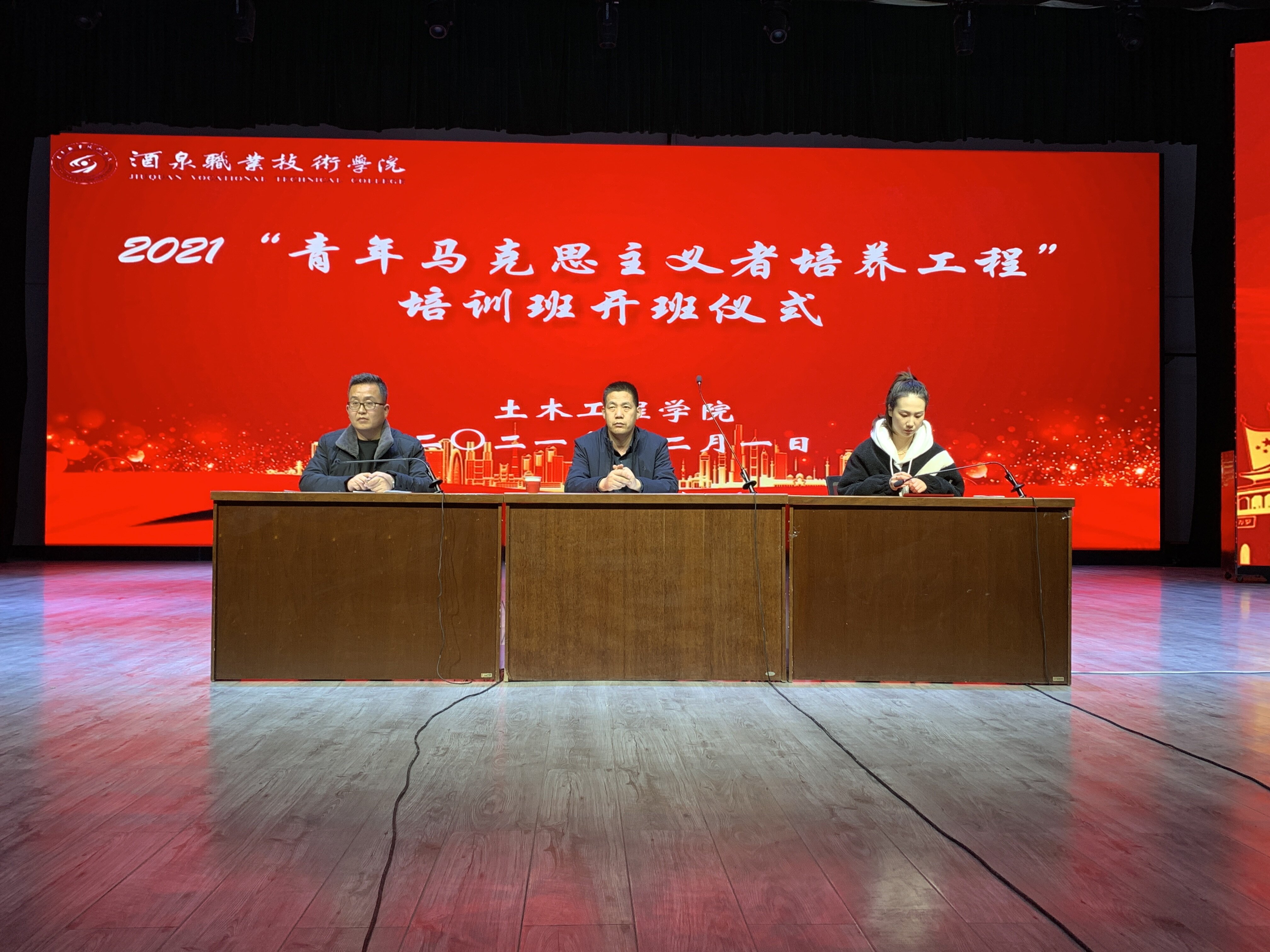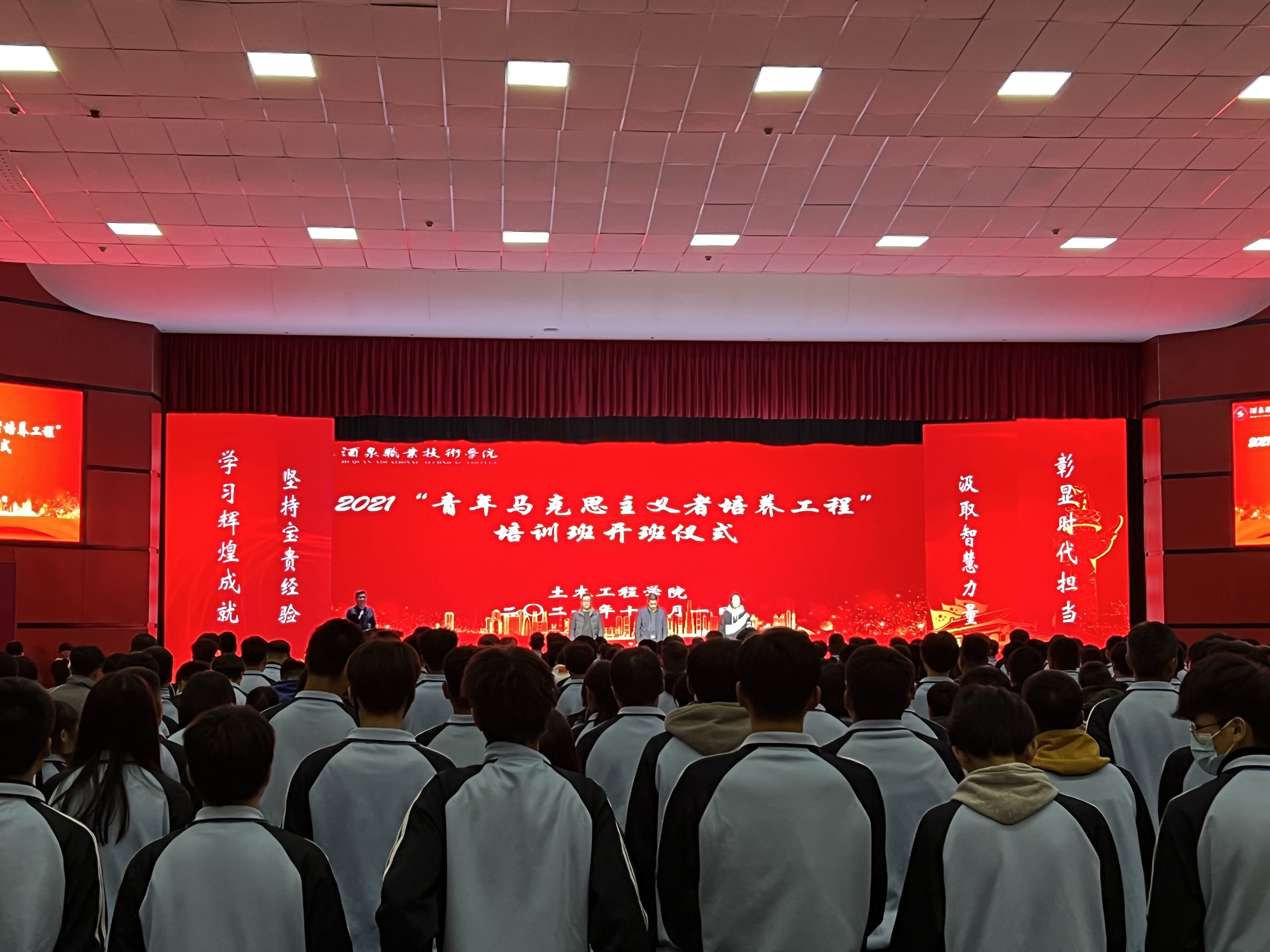 为培养坚定的青年马克思主义者,增强“四个意识”,坚定“四个自信”,引领青年跟党走,在习近平新时代中国特色社会主义新征程中继续奋斗。2021年12月1日19:30,土木工程学院在胡杨活动文化中心举行第十七期青年马克思培养工程班开班仪式。出席本次活动的有土木工程学院副院长蔺栓保、团委书记薛凌荣、辅导员崔萌,以及土木工程学院团委、学生分会主席团成员、学院各团支部代表。