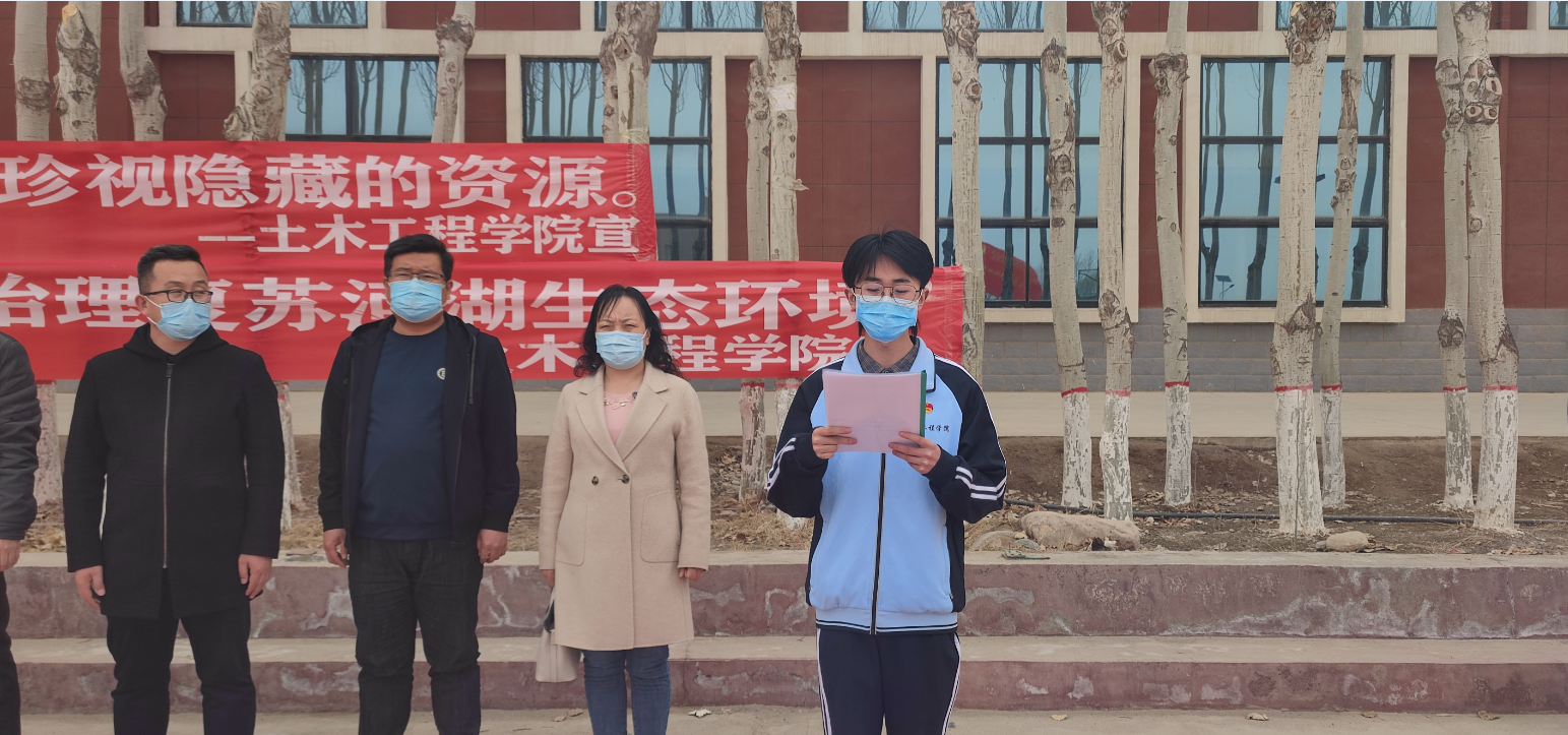2022年3月22日是第三十届“世界水日”,3月22日—28日是第三十五届“中国水周”。今年世界水日的宣传主题是“珍惜地下水,珍视隐藏的资源”,我国纪念2022年“世界水日”和“中国水周”活动的宣传主题为“推进地下水超采综合治理,复苏河湖生态环境”,为此土木工程学院于2022年3月22日在工科实训楼前举行节水护水系列志愿服务活动的启动仪式。学院副院长蔺栓保及水利工程系全体师生参加了本次活动。