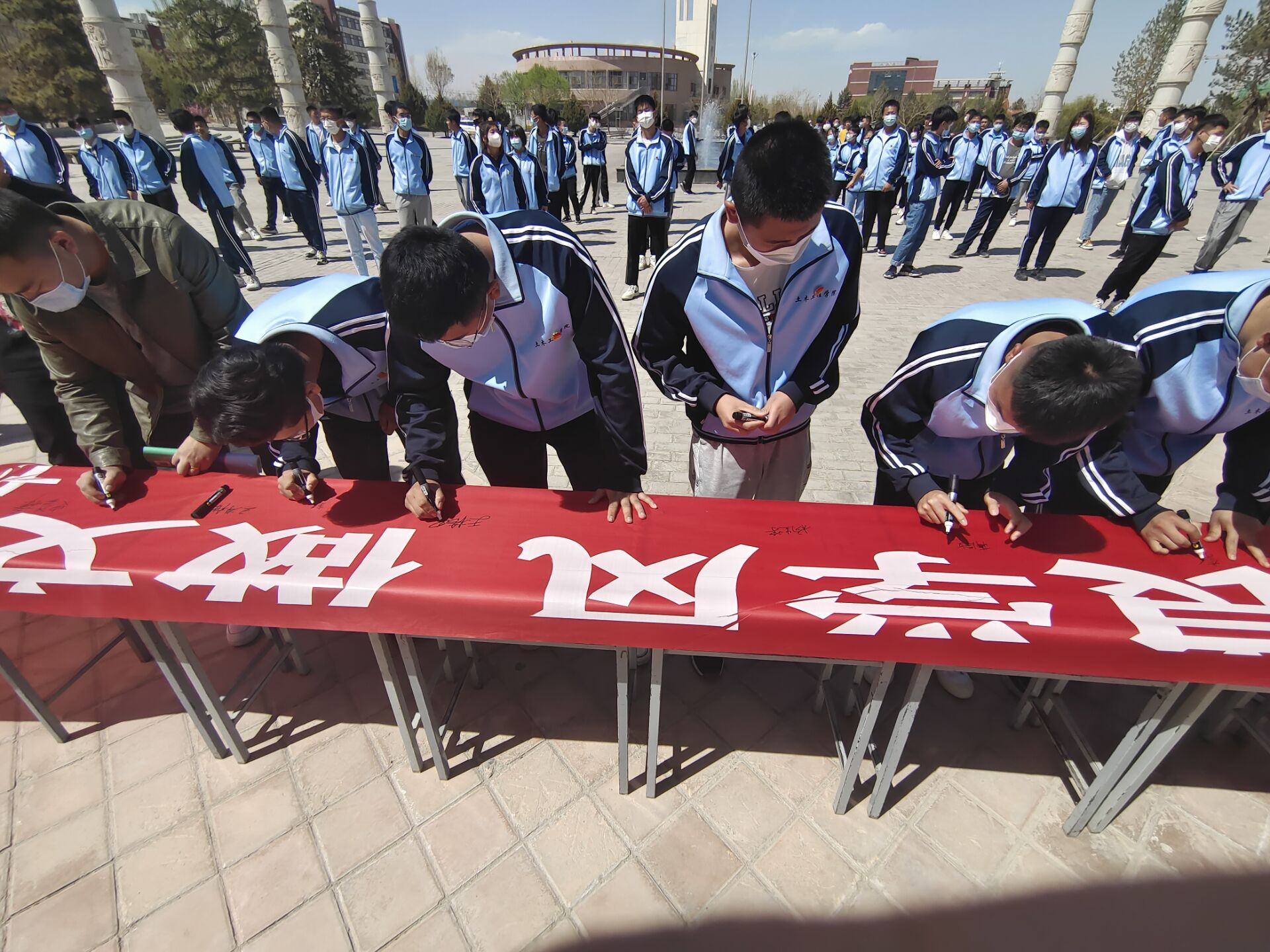 启动仪式后,同学们按班级分批次在“创优良学风,做文明学生”的横福上庄重地签下自己的名字,用实际行动来践行自己的承诺。