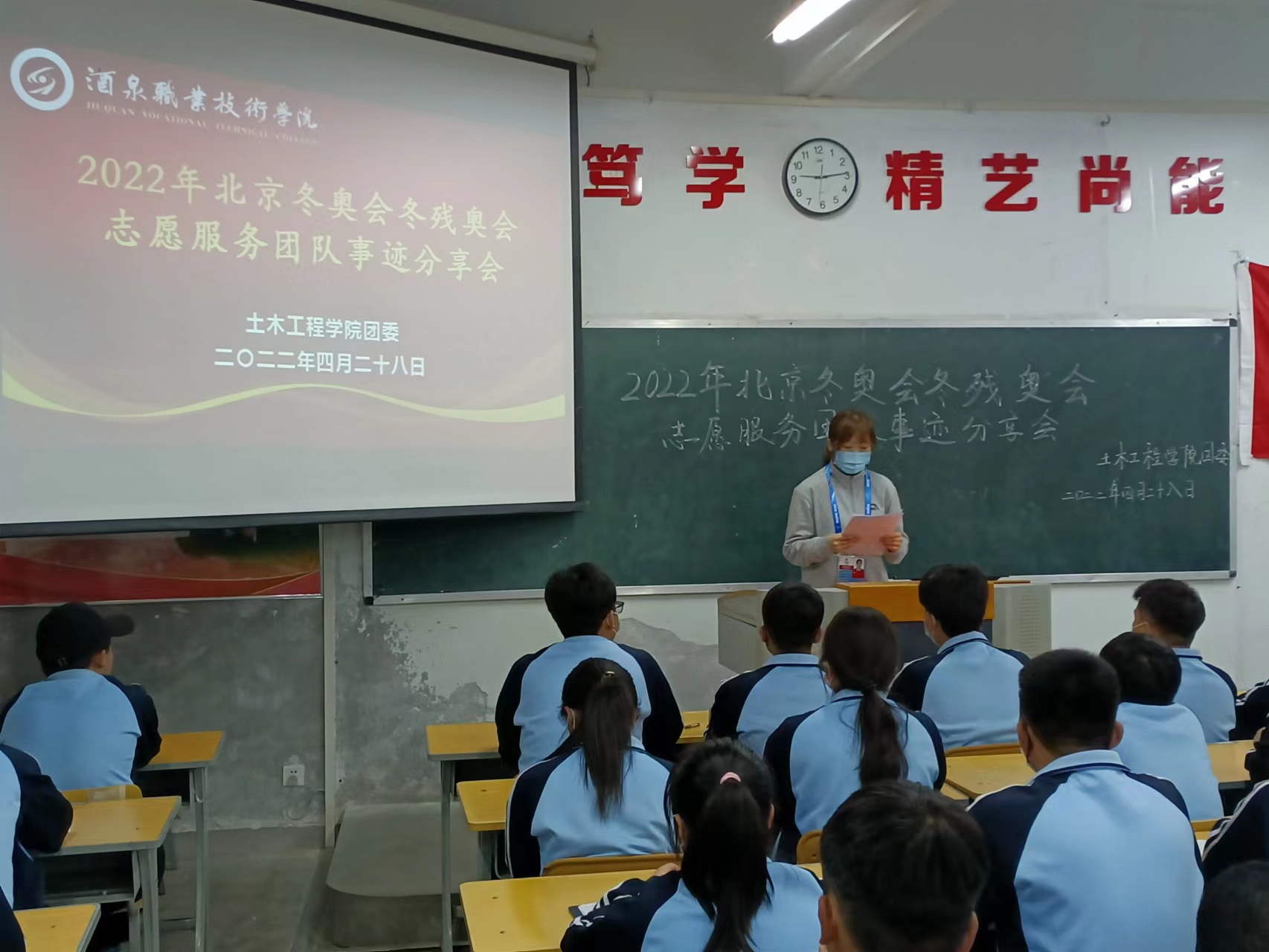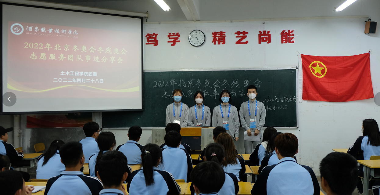 2022年北京冬奥会冬残奥会志愿服务团队为我们分享了他们在北京冬奥会、冬残奥会上的体会和感悟,他们的优秀事迹始终践行着“修身笃学、精艺尚能”的校训,生动实践了“扎根大漠、荫泽苍生”胡杨精神,他们良好的待客之道得到了各国运动员们的一致赞赏,让国际友人看到了礼仪之邦的包容与开放。