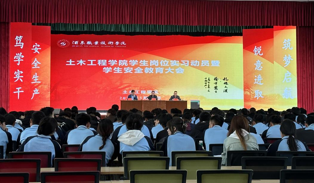 为深入贯彻落实教育部等八部门印发的《职业学校学生实习管理规定》和《甘肃省职业学校学生实习管理办法(试行)》等文件精神,2024年3月29日,我院在胡杨文化活动中心先后举行2021、2022级学生岗位实习动员暨学生安全教育大会。学院领导、老师出席,600余名学生参与。会议由副院长蔺栓保主持。