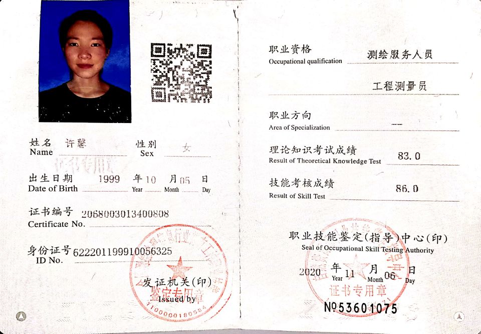 姓名:许馨 籍贯:甘肃张掖 专业:工程造价