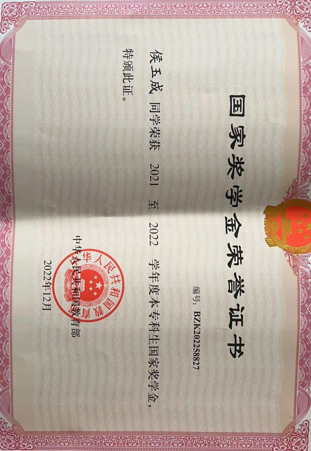 2021-2022学年度国家奖学金
