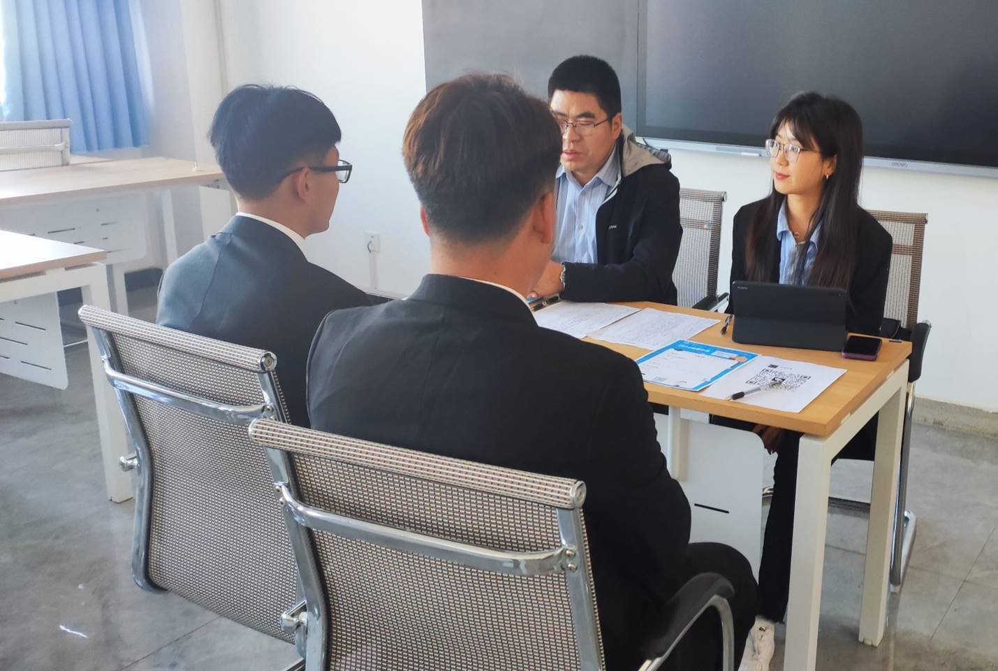 27日下午,与会企业代表对学生进行了就业指导和企业宣讲,28日上午,组织与会企业嘉宾召开了校企座谈会、开幕式和双选会。28日下午,组织开展了面试环节。酒泉职业技术学院党委委员、副校长施荣同志参加座谈并在开幕式上致辞,企业代表新疆北方建设集团有限公司侯震女士、2024届毕业生代表司强同学进行了发言。