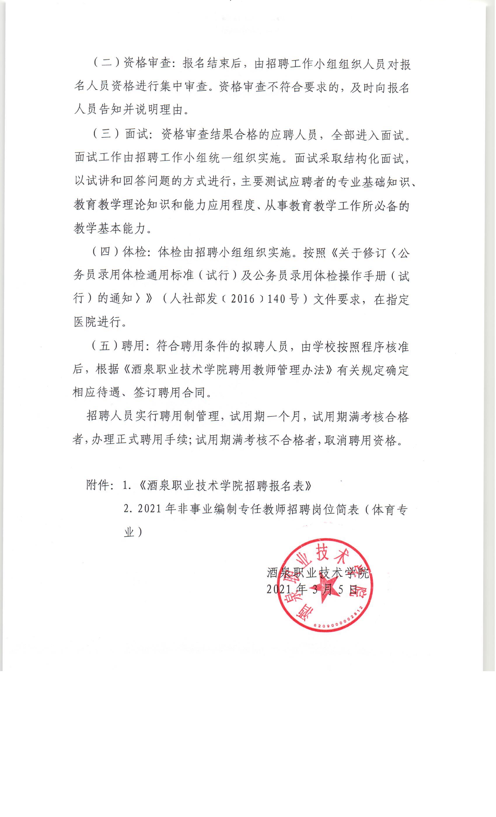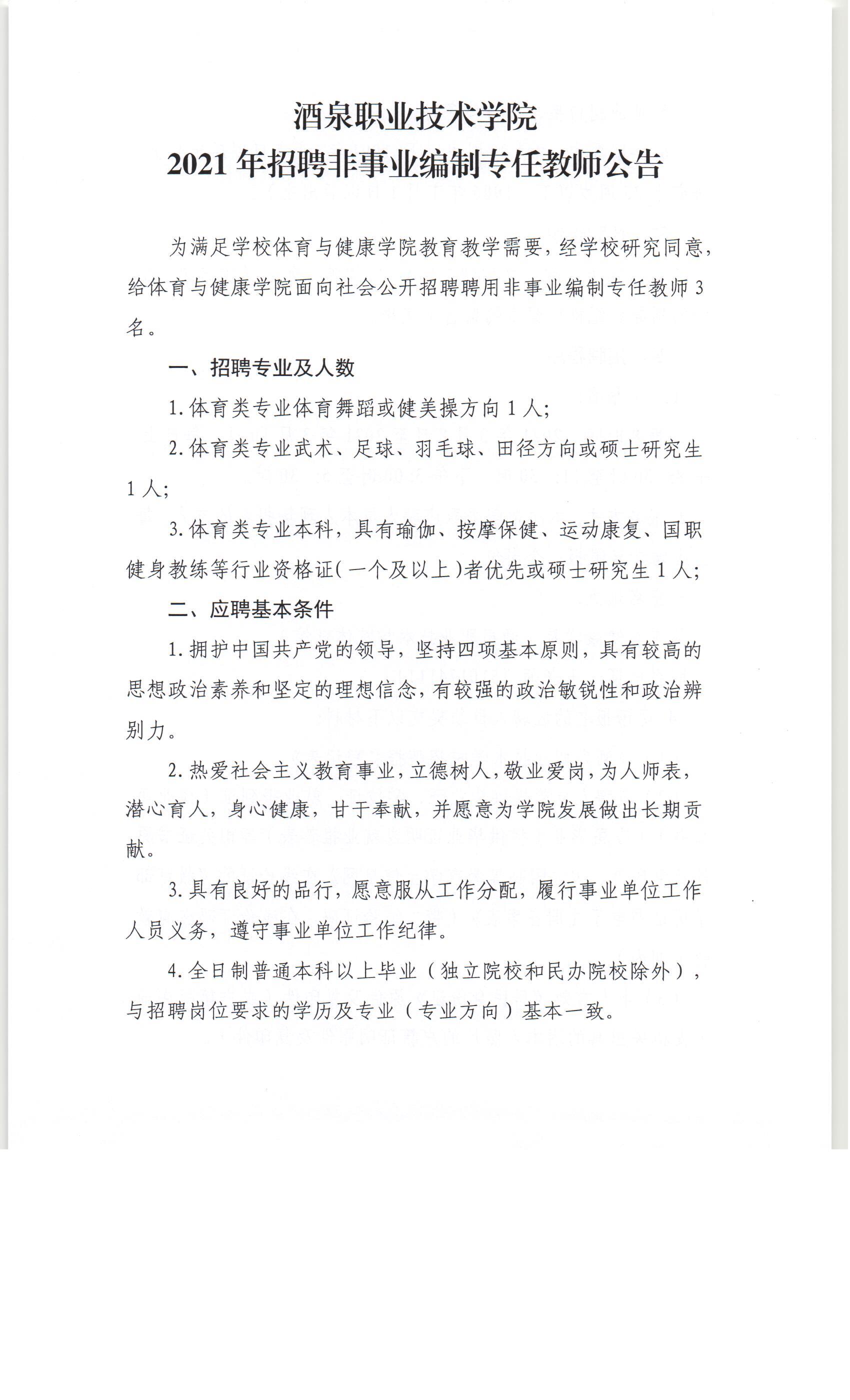 通知公告 > 正文酒泉职业技术学院2021年招聘非事业编制专任教师公告