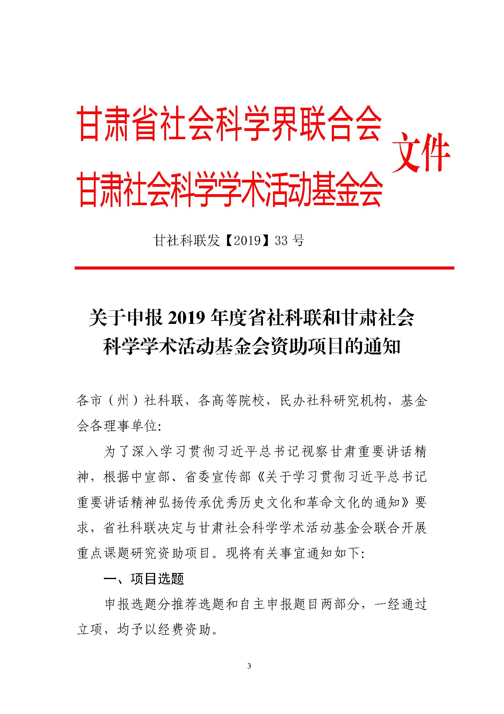 关于申报2019年度省社科联和甘肃社会科学学术活动基金会资助项目的通知