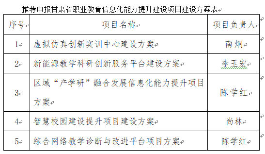 关于申报甘肃省职业教育信息化能力提升建设项目建设方案的公示