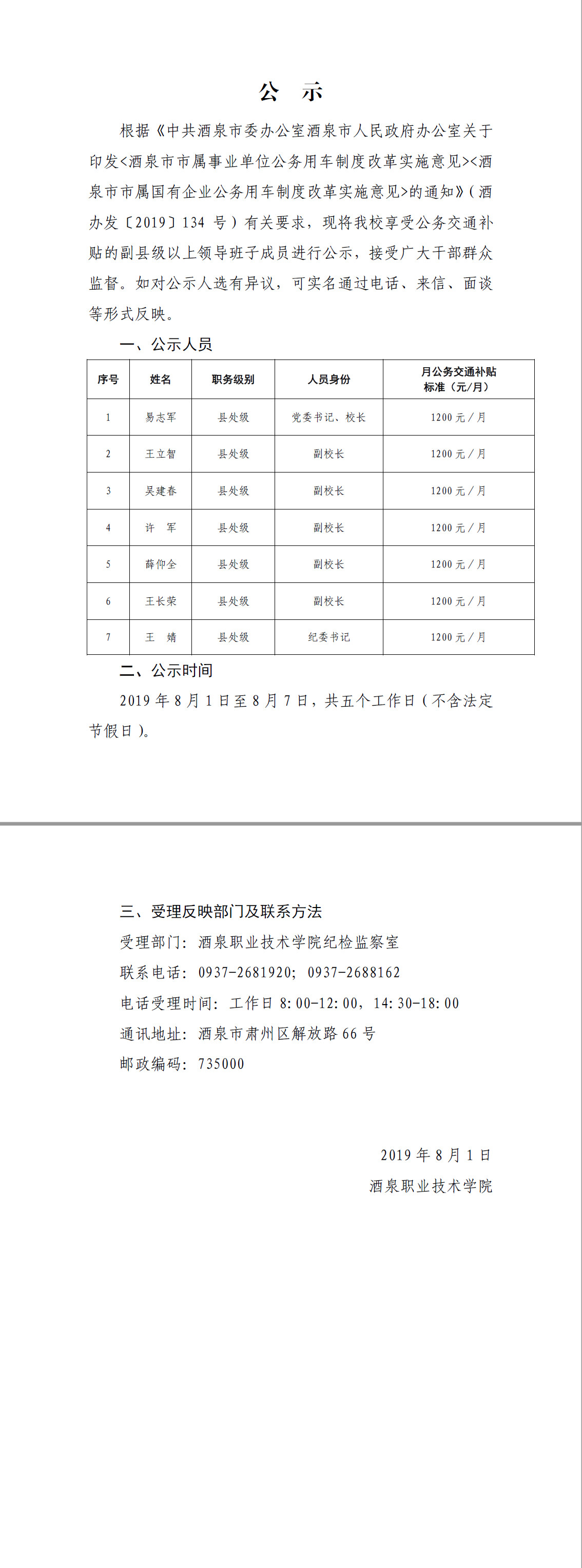 通知公告 > 正文公示
