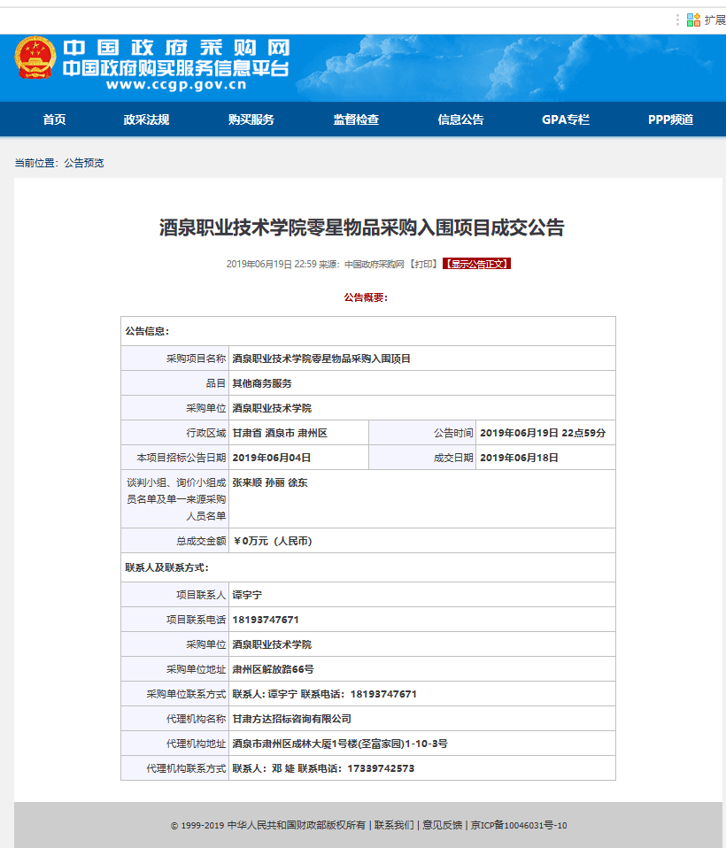 通知公告 > 正文酒泉职业技术学院零星物品采购入围项目成交公告