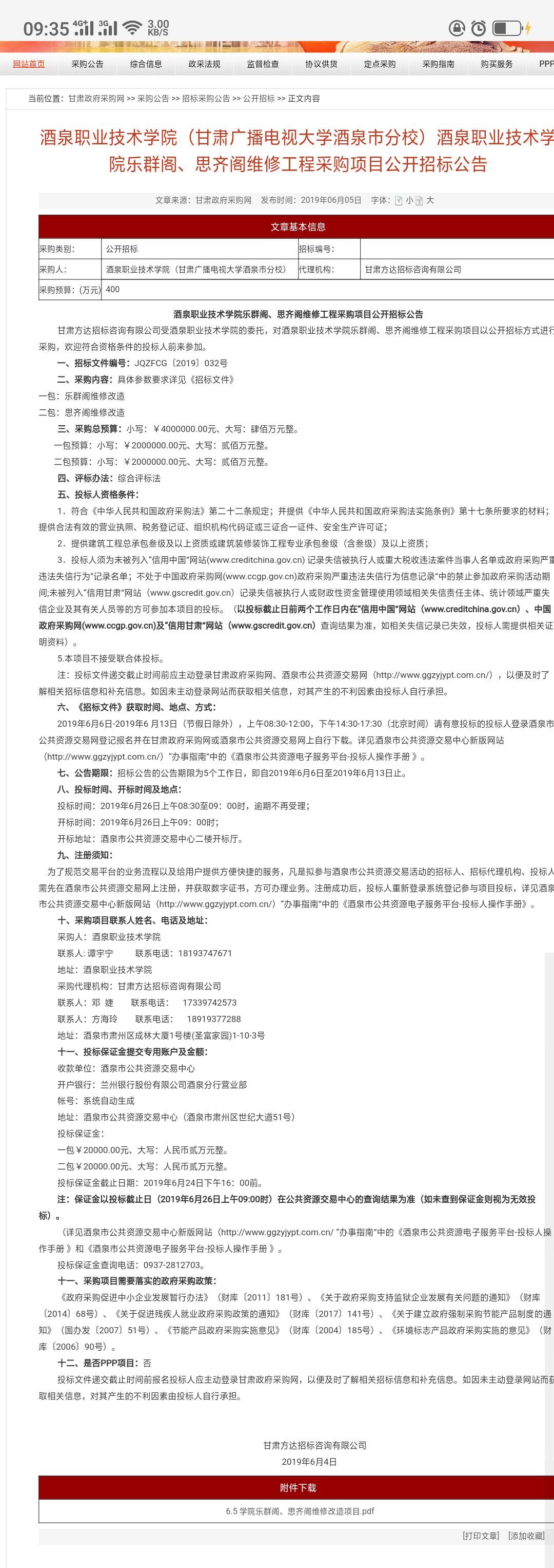 酒泉职业技术学院乐群阁、思齐阁维修工程采购项目公告