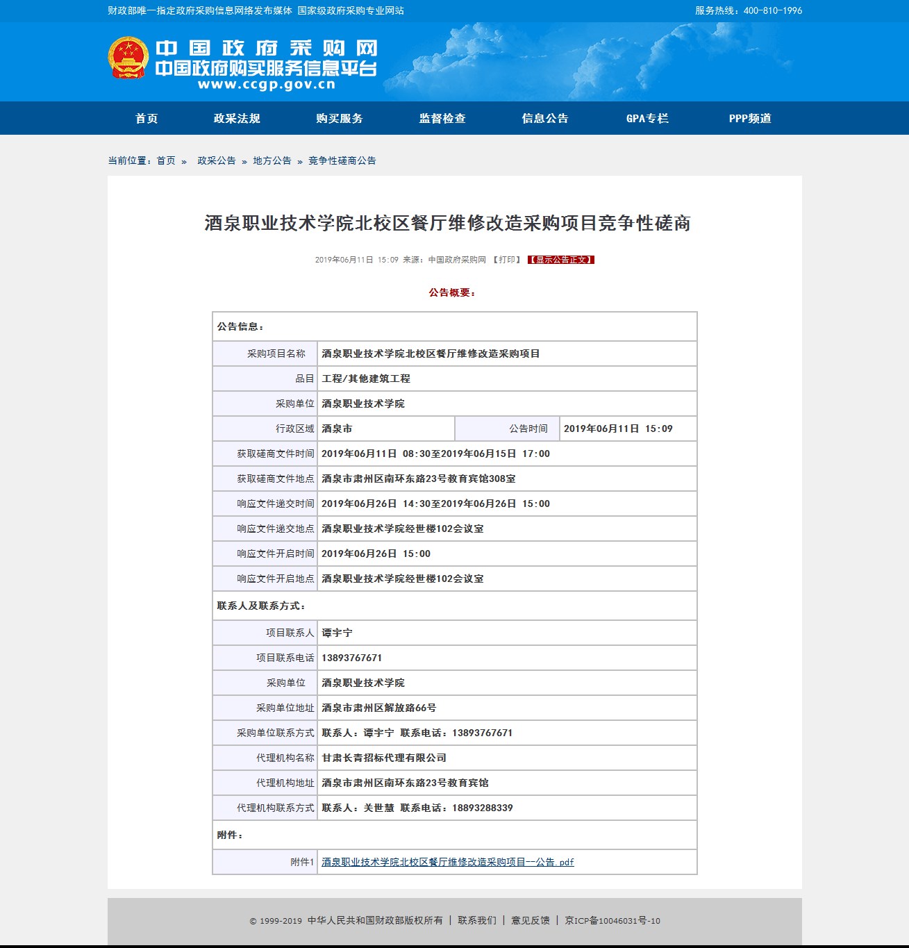 酒泉职业技术学院北校区餐厅维修改造采购项目公告竞争性磋商
