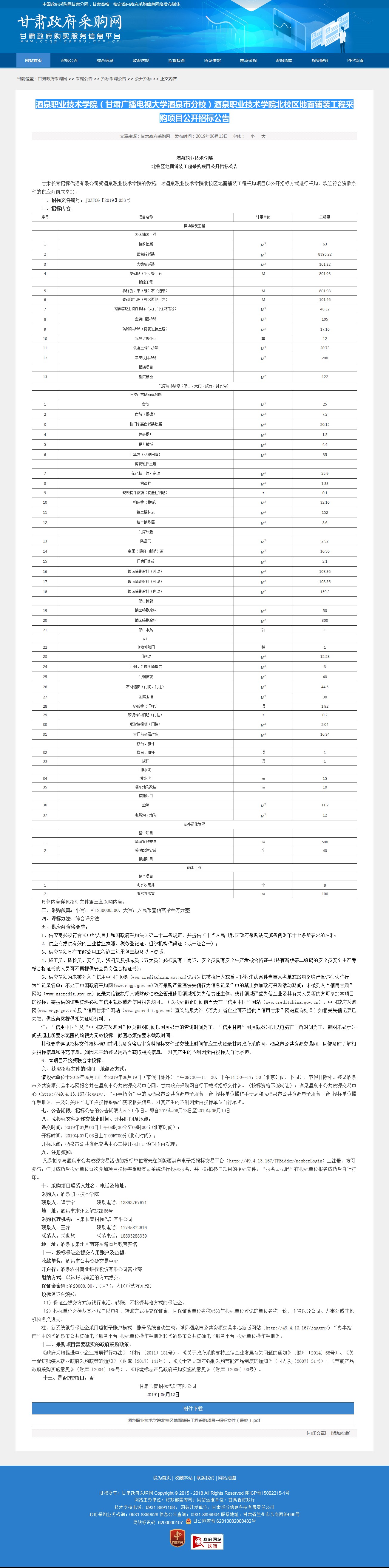 通知公告 > 正文酒泉职业技术学院北校区地面铺装工程采购项目公开招标公告