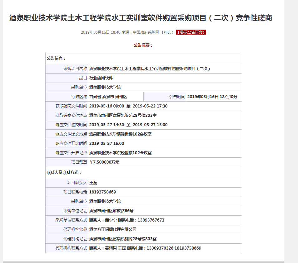 通知公告 > 正文酒泉职业技术学院土木工程学院水工实训室软件购置采购项目(二次)公告