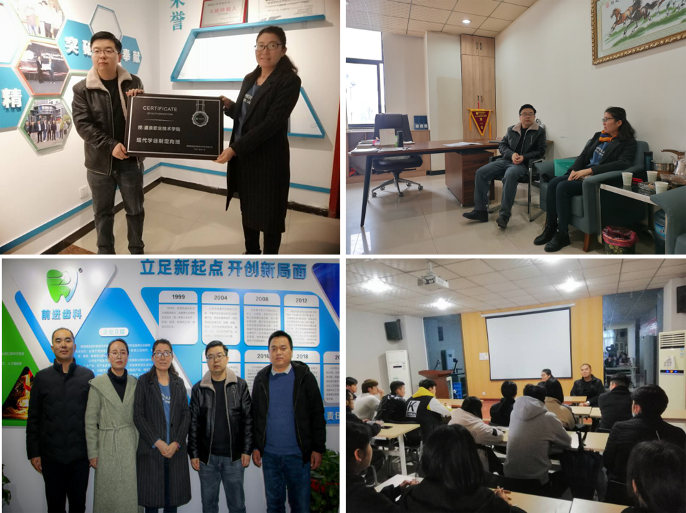 段院长一行首先回访了我院实习合作单位——陕西前进义齿科技有限公司,与陕西前进义齿科技有限公司签订了现代学徒制定向班培养协议并进行了授牌。期间与我院2018级口腔医学技术专业实习学生进行座谈,对学生提出的在生活、学习、工作等方面存在的困难与该公司主管领导进行协调并给予了解决。
